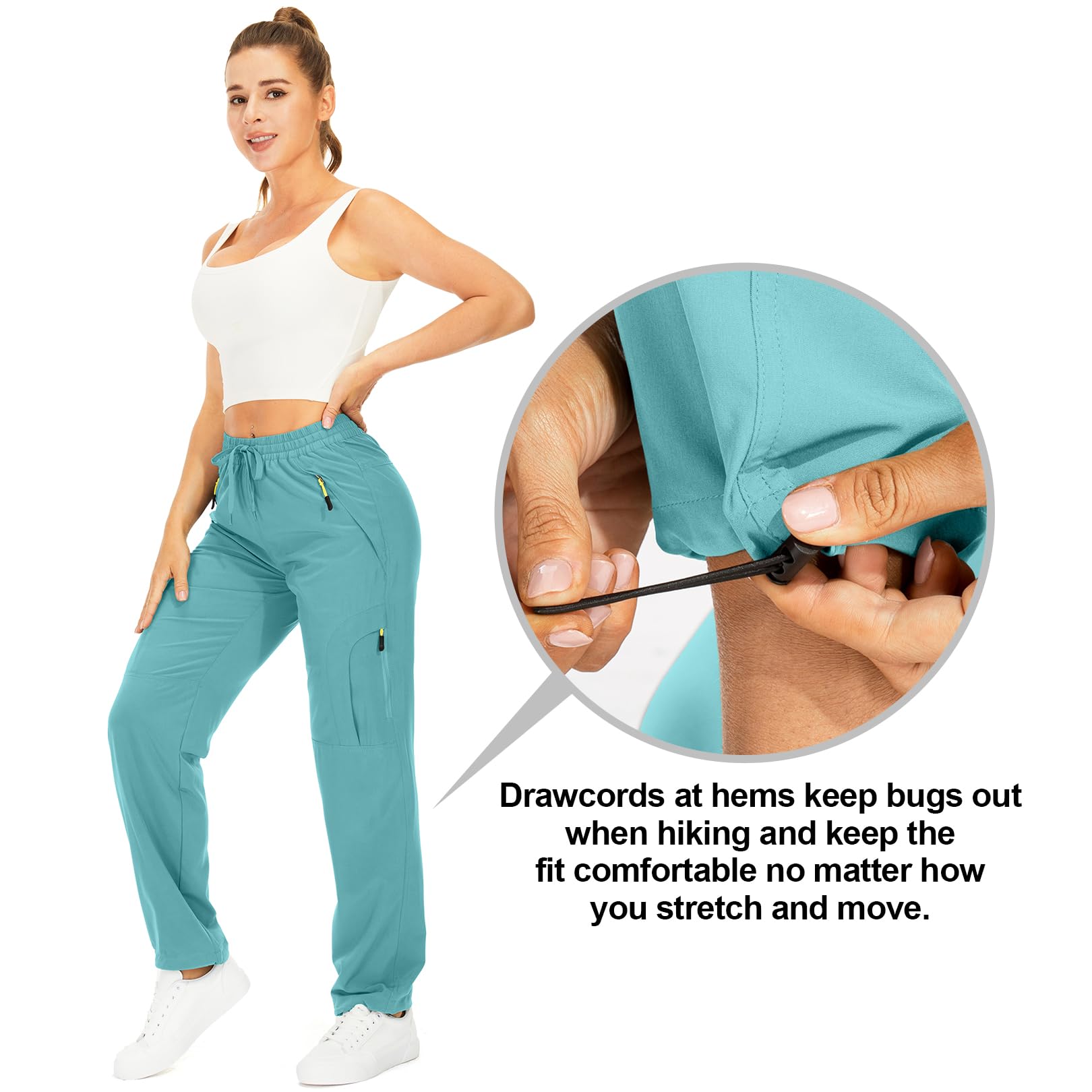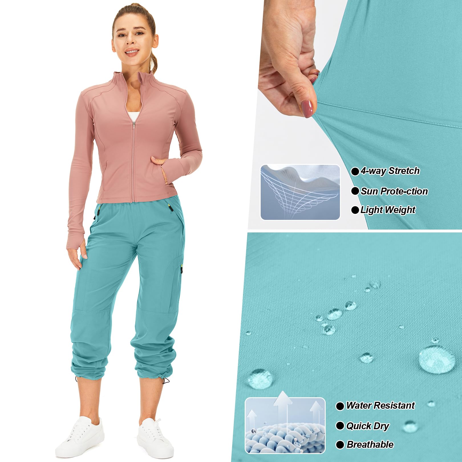 Cargo pants women:skin-friendly, lightweight, quick dry, breathable, wrinkle-free, womens cargo pants features a four-way stretch that acts like a second skin to help keep you dry and cool.