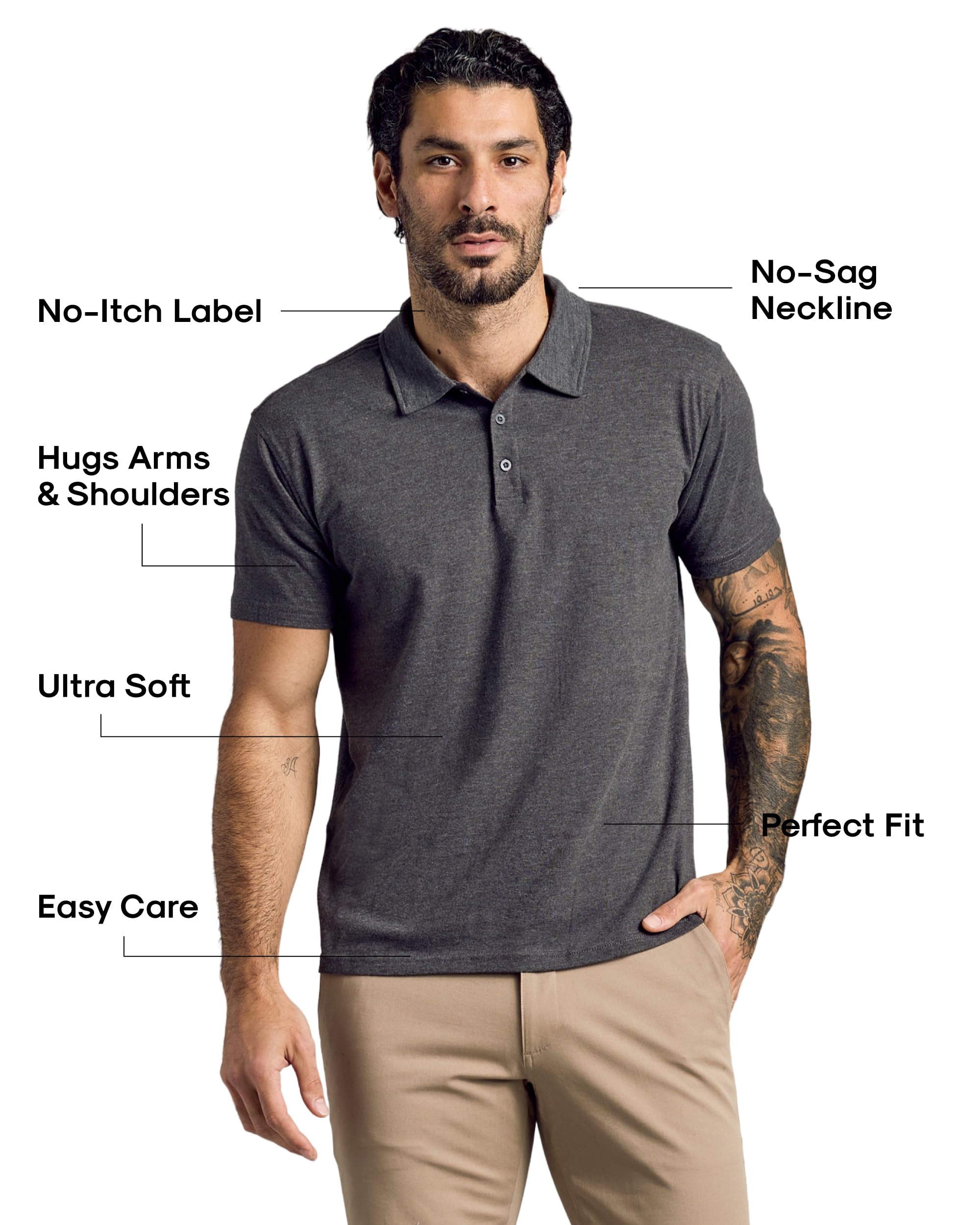 ALL-DAY COMFORT: Choose our buttery-soft cotton-poly blend polo t shirts for men for timeless comfort with minimal shrinkage, or our stretchy poly-spandex golf shirts for men with moisture-wicking and odor control for performance on the go.
