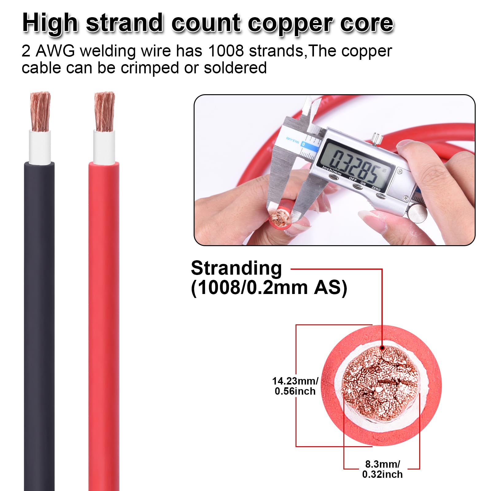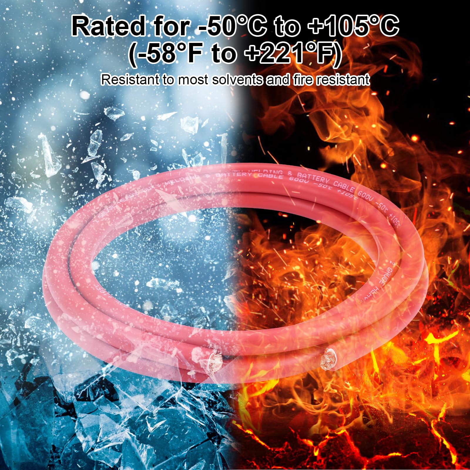 【Double EPDM Insulation Sheath】Compared with other thin jacket,our welding cable made of double insulated protective sheath. Working temperature range -50°C to +105°C (-58°F to +221°F), resistant to most solvents and fire. Polyolefin material has the characteristics of heat resistance, wear resistance, tear resistance, moisture resistance, oil resistance, corrosion protection (excellent for outdoor and marine applications) etc.