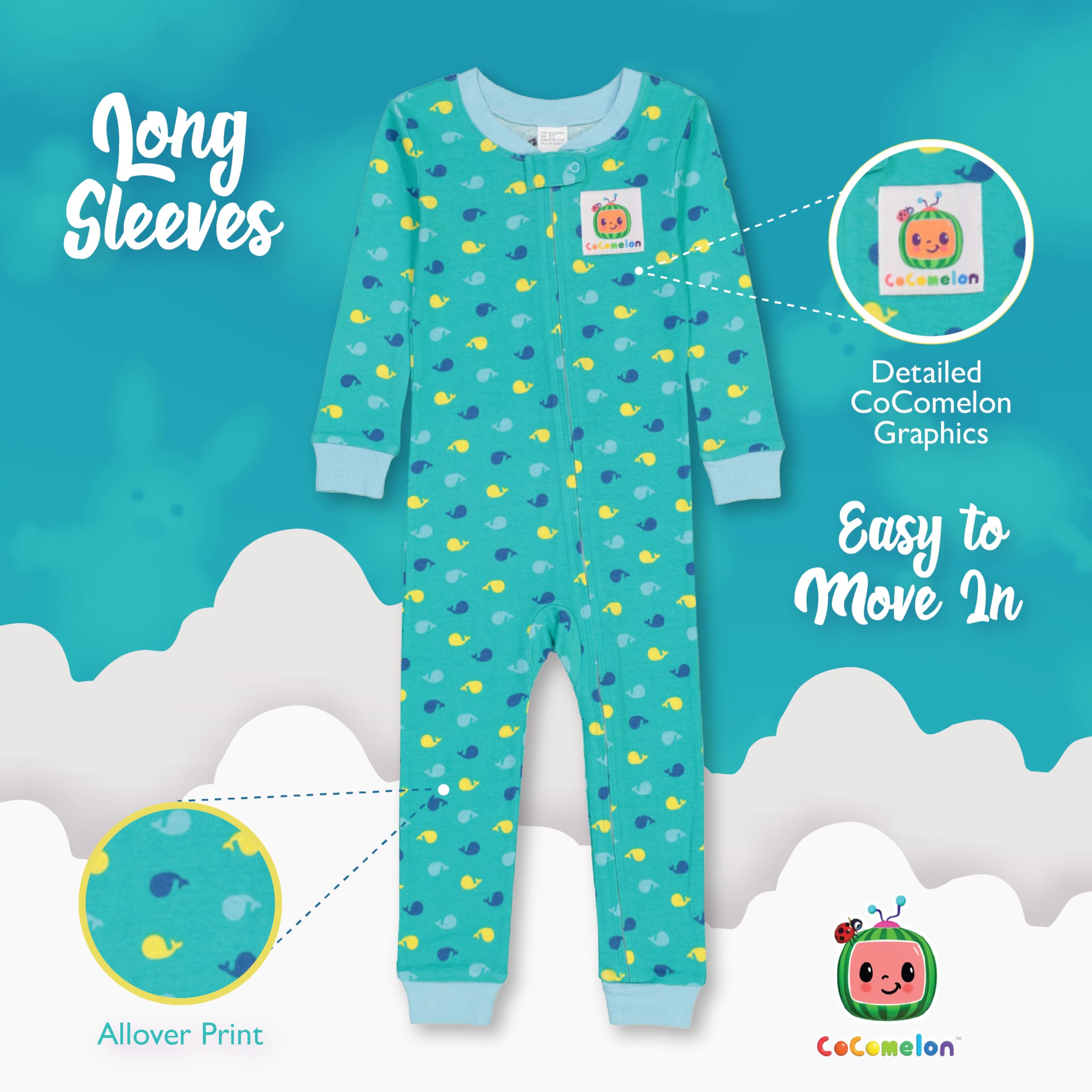 COCOMELON PAJAMAS: Get your little boy or girl ready for bedtime adventures with JJ, YoYo, and TomTom in this fun and cute CoComelon sleeper. These fun pajamas are officially licensed CoComelon merchandise.