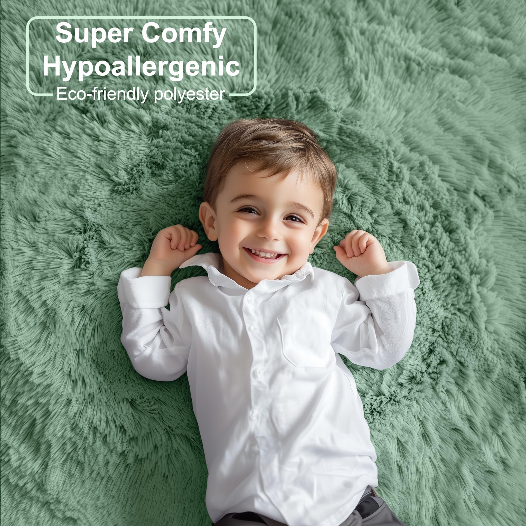 【 Safe Materials & Good Gift】 This super soft, velvety carpet is made from eco-friendly polyester, does not contain any harmful substances, no smell, no shed, which is protecting floors from stains and perfect for homes with children and pets.The plush texture offers comfort for barefoot walking and tummy time, the rich color choices and furry appearance add fun to any room-Also a good gift for grandson, granddaughter, little girl boy, baby girl boy, teenage teen girls, they will love it.