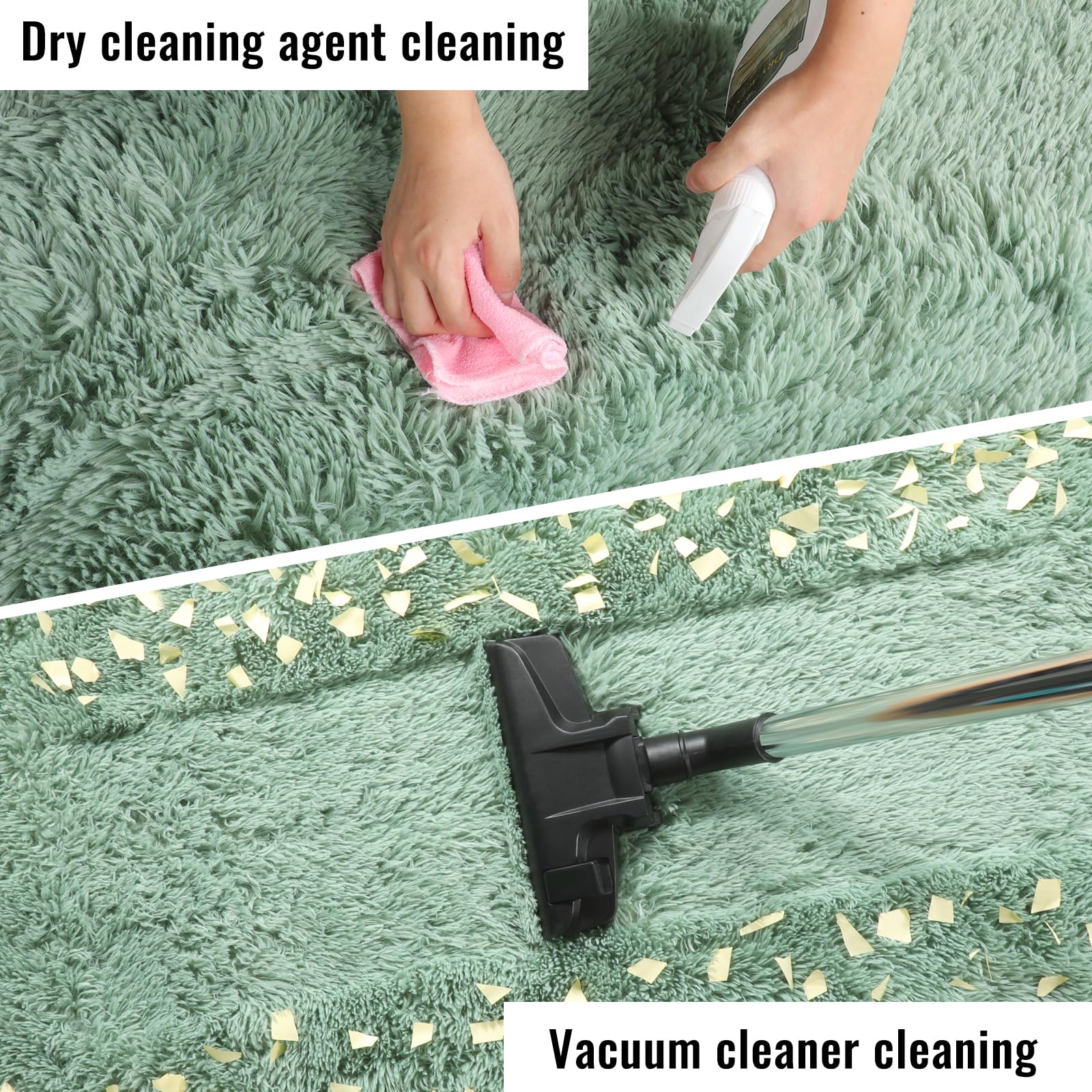 【 Cleaning Tips 】We recommend machine washing separately in water below 30°C (121°F) with a mild detergent, followed by air drying.(Don't use the dryer)Easy Daily Cleaning - Use a small handheld vacuum cleaner to remove dust or hair, and it's best to clean with a damp rag if you want the rug to last longer. Do not use chlorine or bleach.