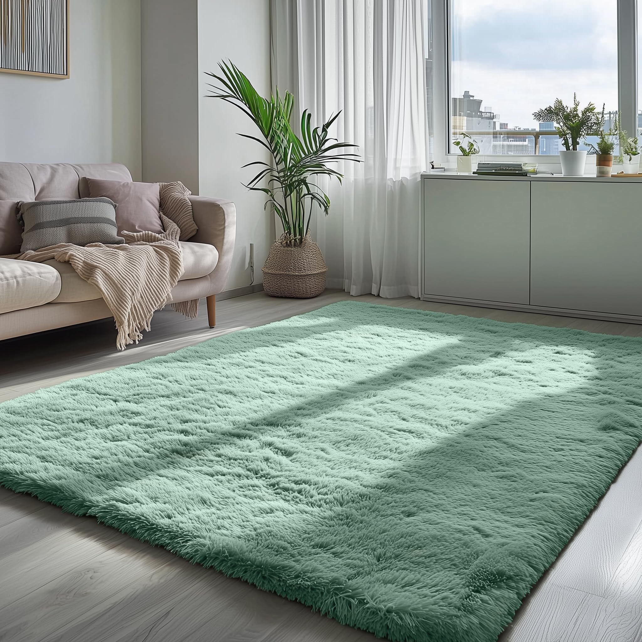 【 PAGISOFE Modern Area Rug 】The fluffy rug provides soft and comfortable touch which makes you feel like walking and lying on the clouds.Your pets and kids will love to move around on this carpet, which has a 30% thicker foam pad and a 1.5-inch pile surface. The shag rug are perfect addition to your favorite space.The high pile provides a soft and comfortable touch, whether you are standing or sitting on this large area rug, you can relieve the fatigue of your day.
