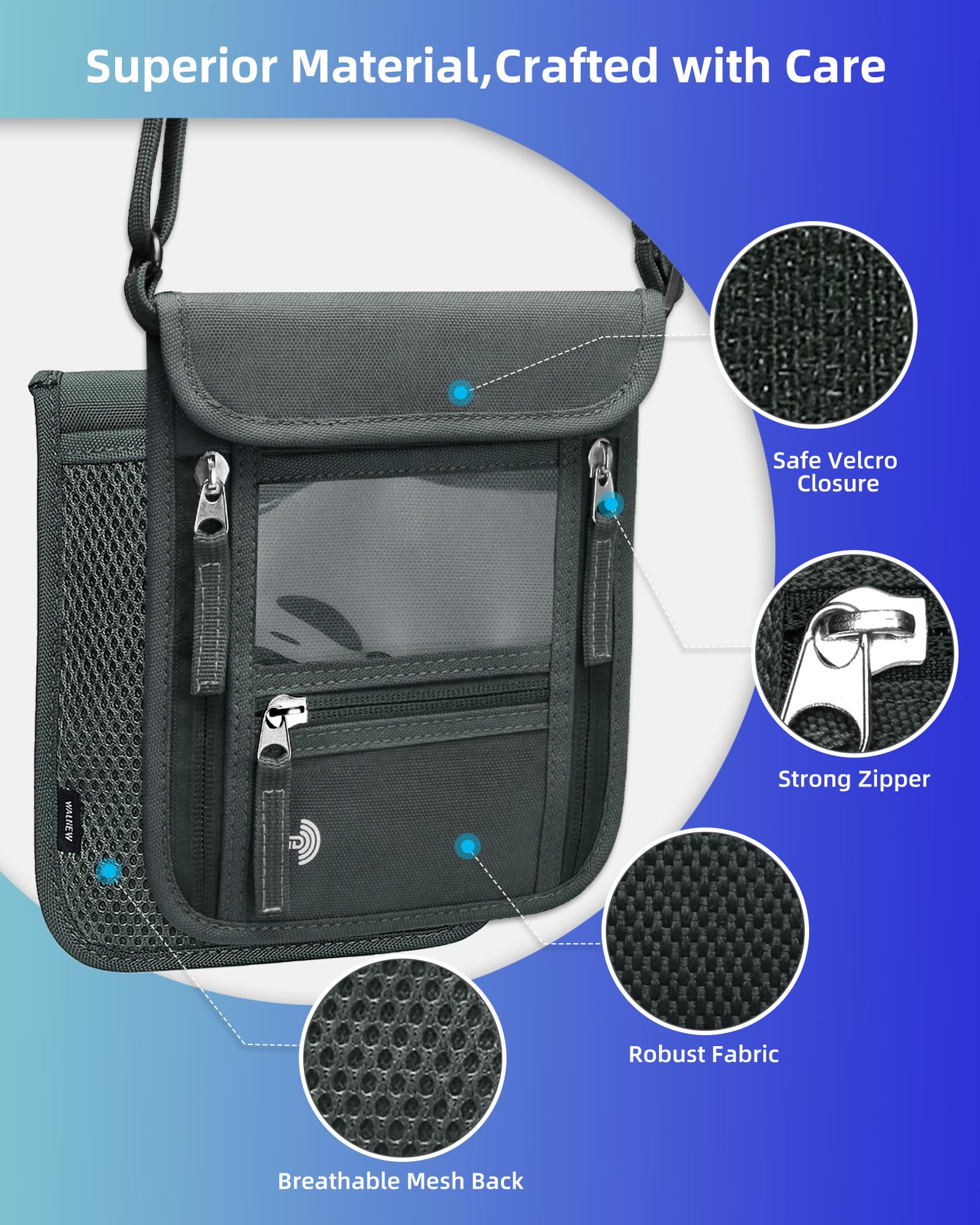 HIGH QUALITY&CLASSICAL DESIGN: This travel wallet is made of premium fabric, which is long lasting and lightweight. Exquisite stitched seams will last a good long time. The nylon mesh on the back is also soft and helps keep the body cool while wearing this neck pouch
