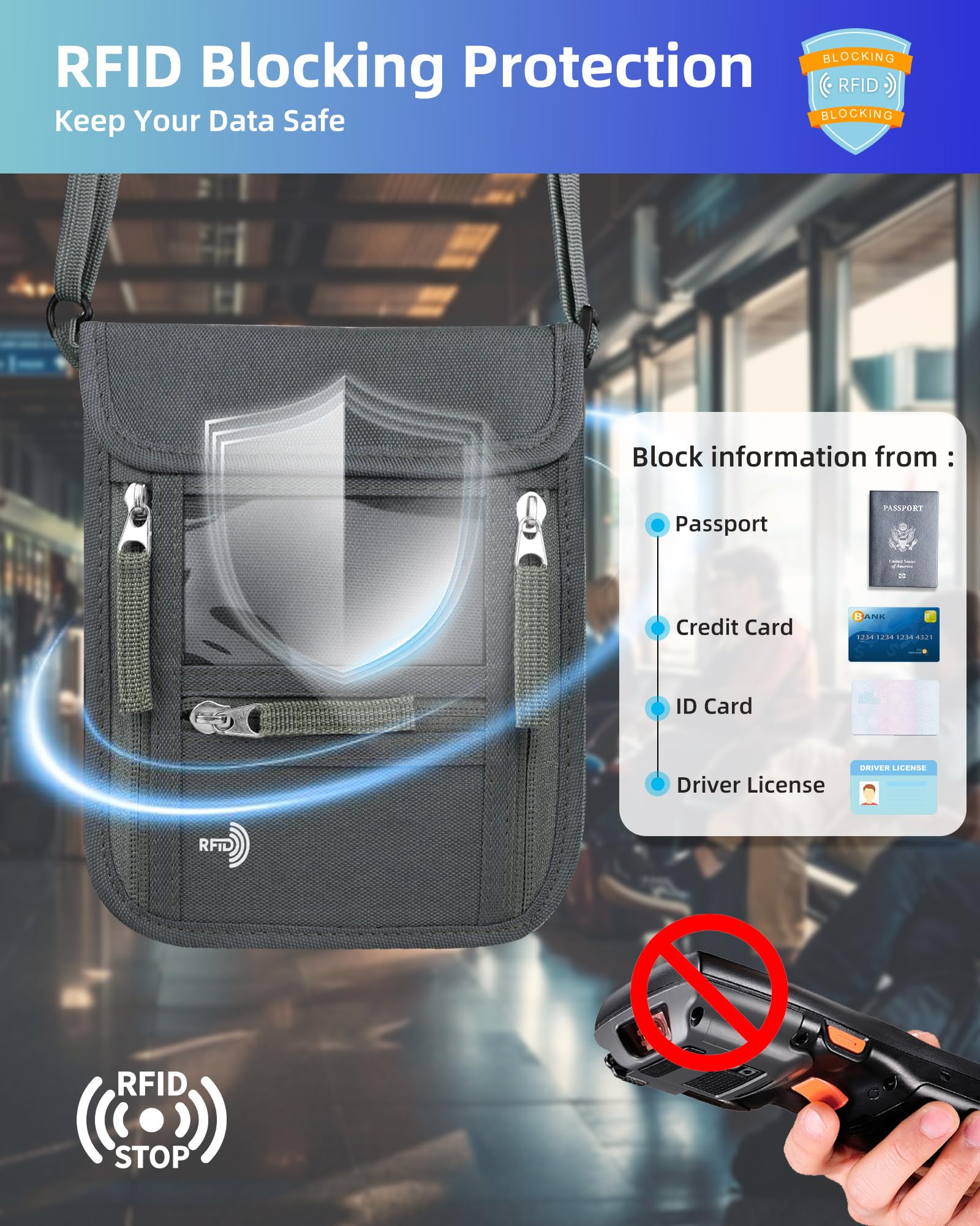 RFID BLOCKING: With built-in RFID blocker, no high-tech pickpocket will ever walk away with your credit card numbers or digital passport information from this passport wallet