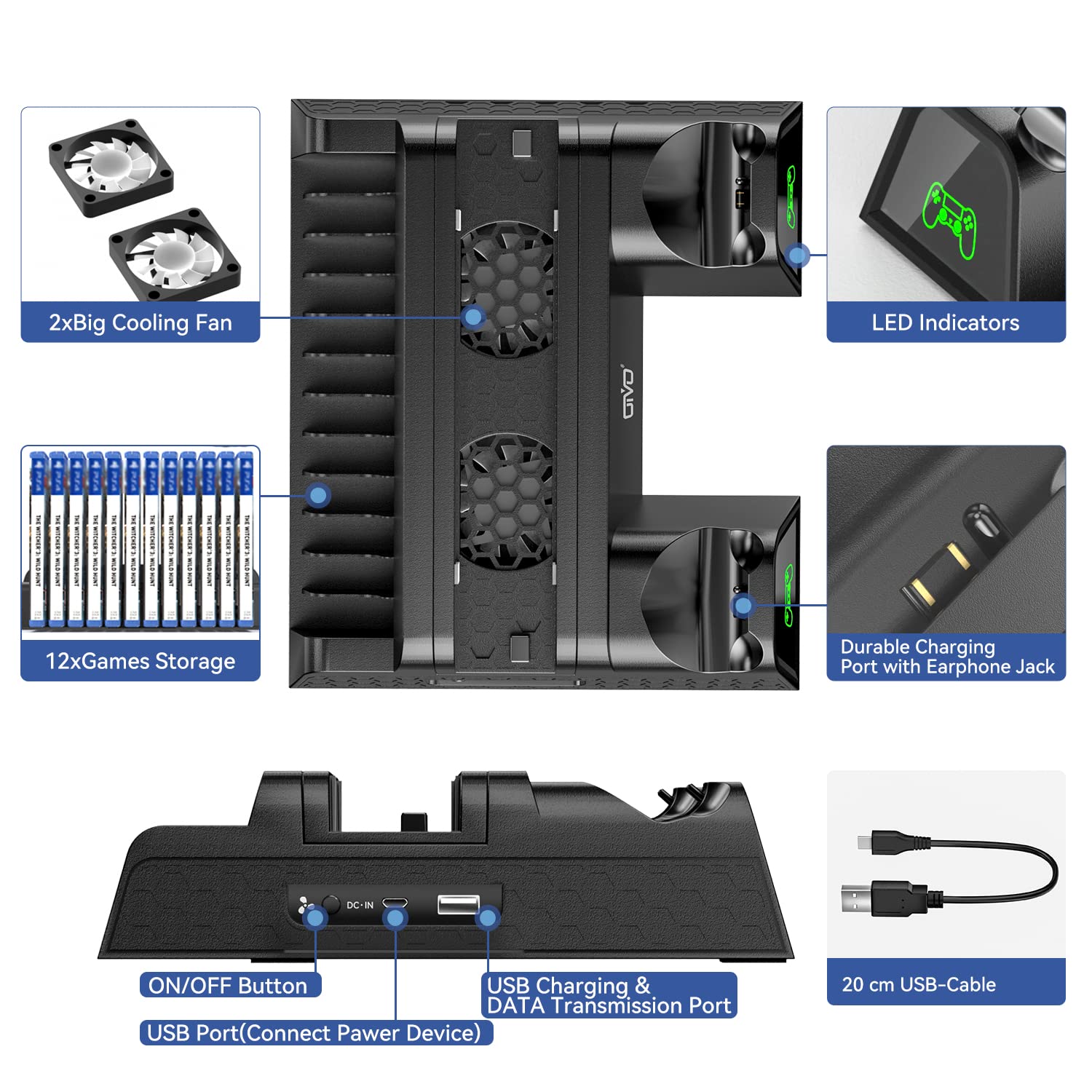 Multi-functional Design for Regular PS4/ PS4 Slim/ PS4 Pro Console: Cooling & storage your Playstation 4 console, with dual controller charger station and 12 game slots.