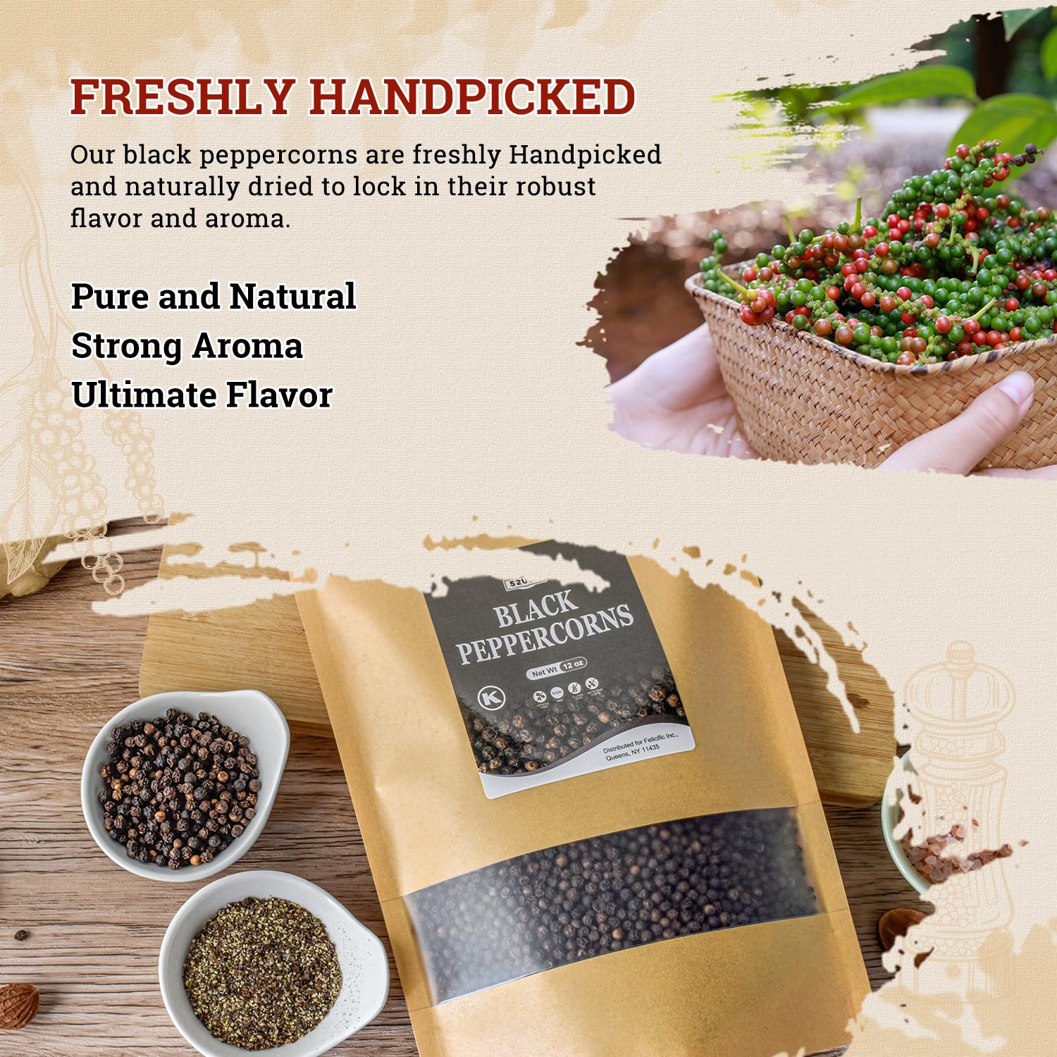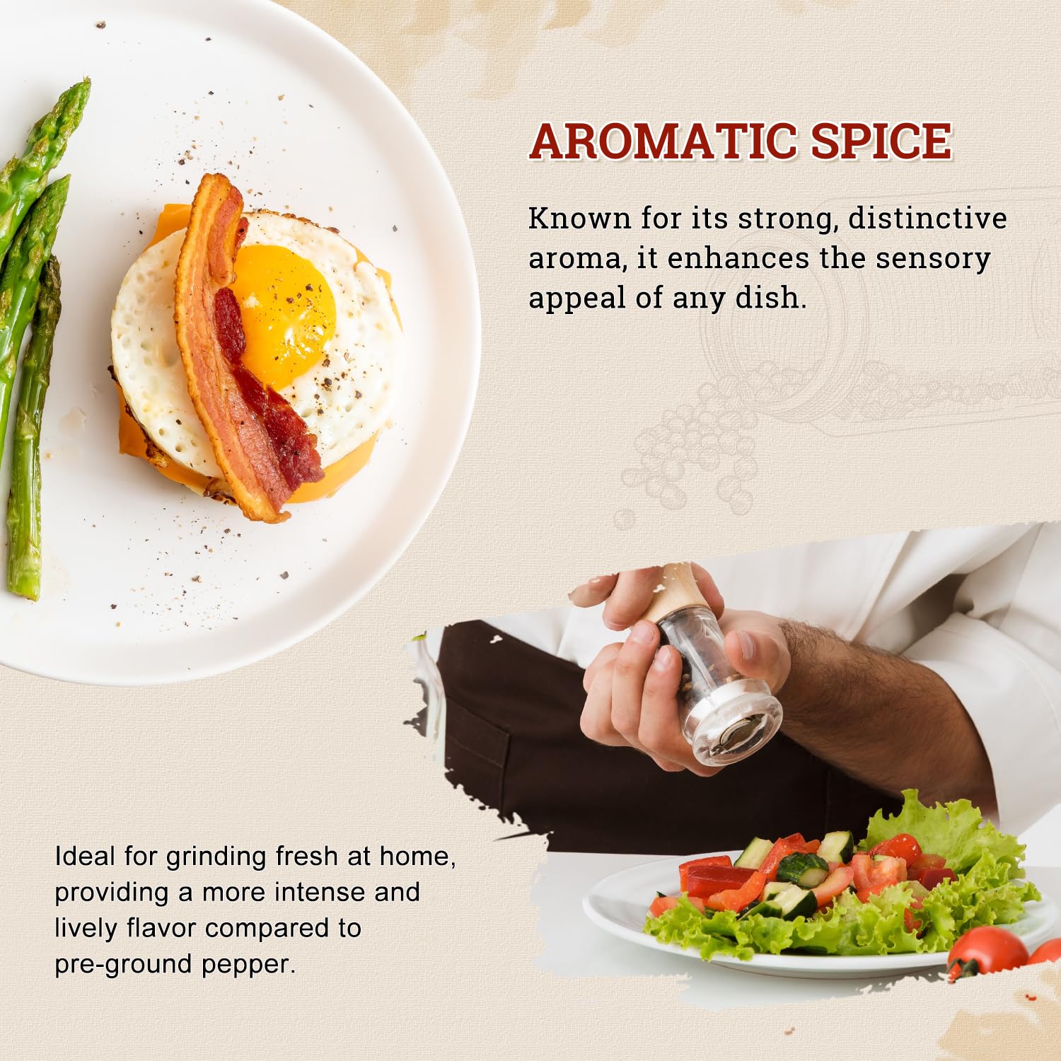 WIDE RANGE OF USES: Black peppercorn is a must-have ingredient in many cuisines around the world. Used to add flavor and complexity to all types of meat, soups, vegetables and marinades. It is also perfect for making marinades, sauces, and salad dressings, or seasoning steaks and roasts