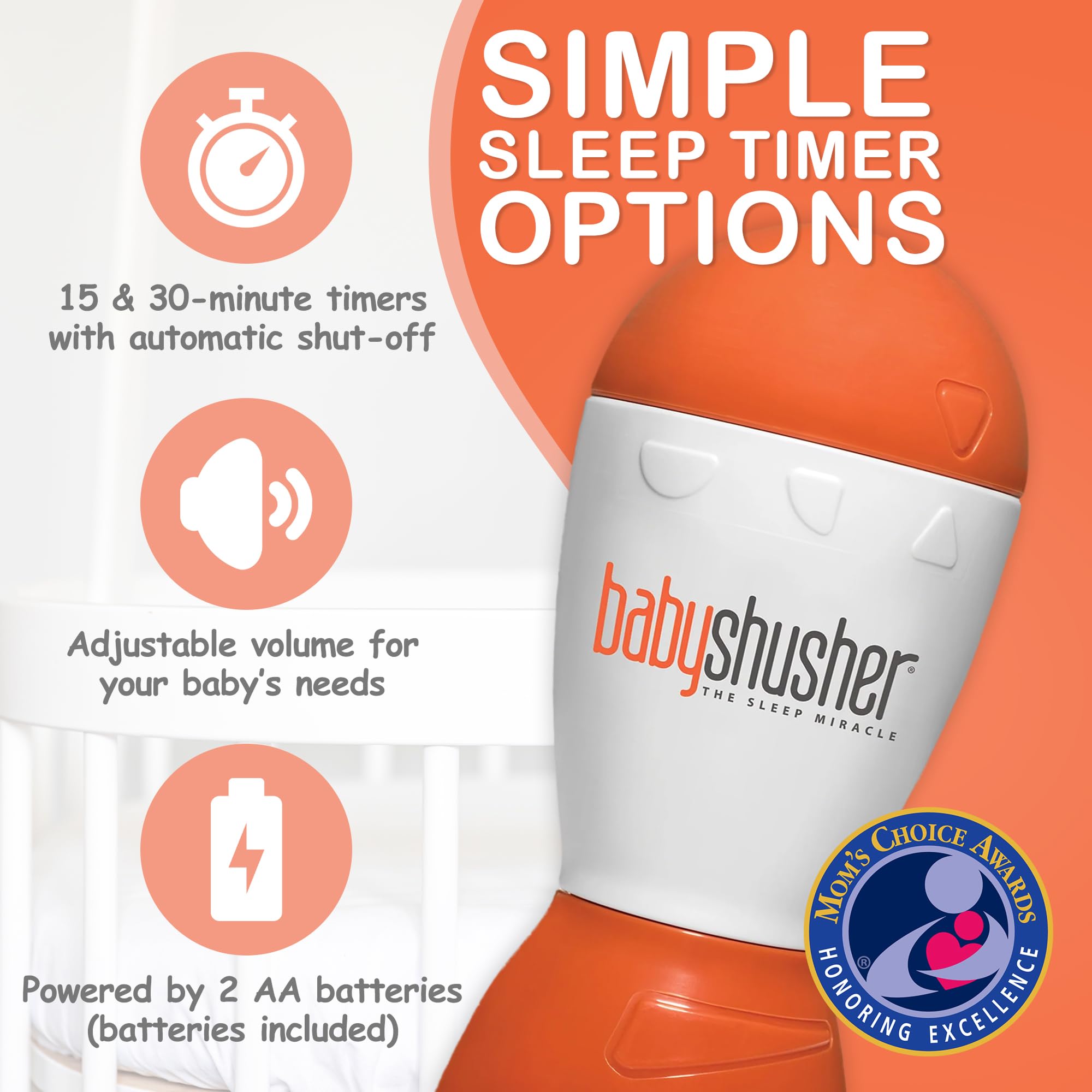 Simple & Easy to Use Choose from timer settings to help establish consistent sleep routines. The portable design allows parents to easily place the Baby Shusher near a crib, bassinet, or changing area.