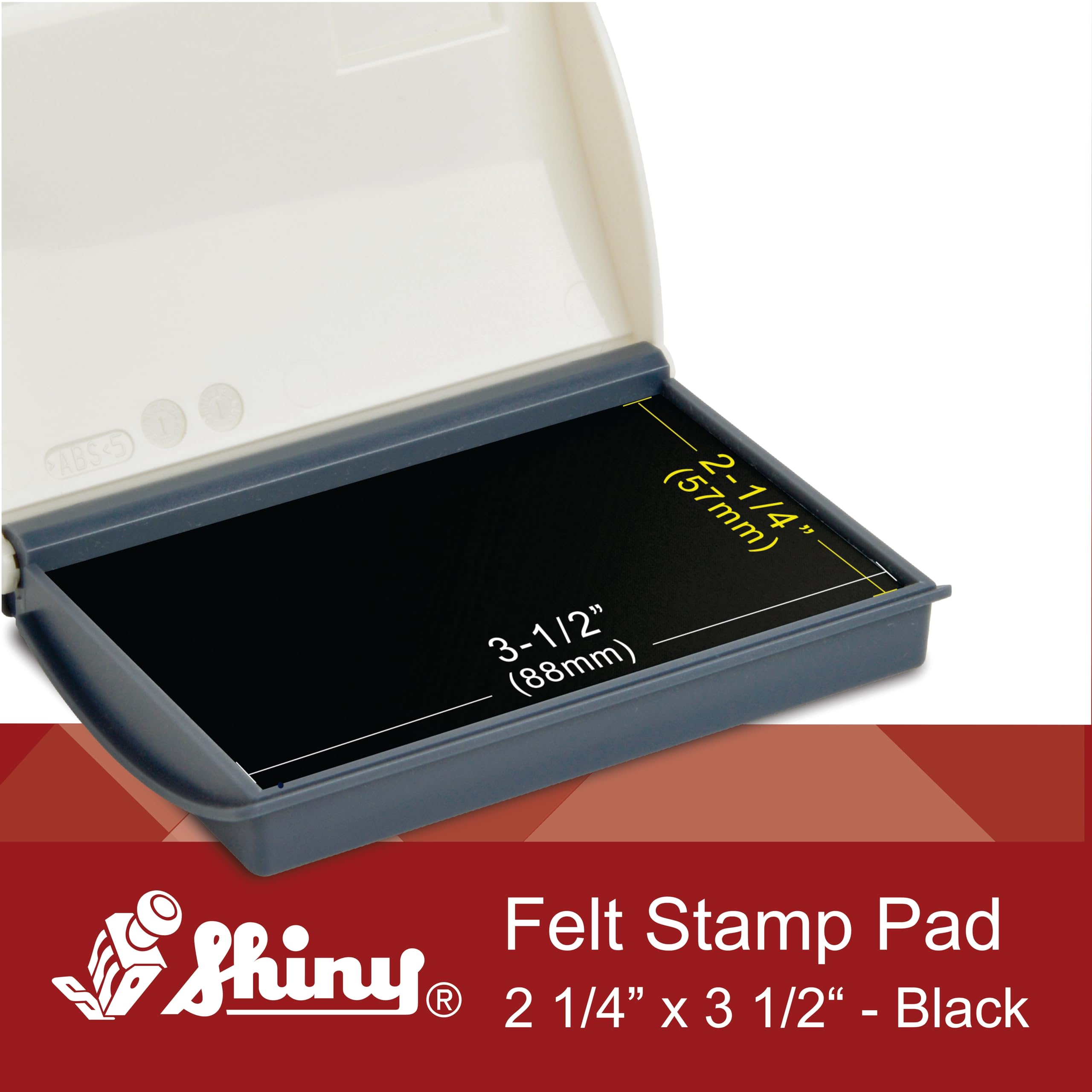 Shiny brand, compact 2 1/4 inch x 3 1/2 inch felt stamp pad. Durable felt based material will stand up to your ink pad needs for years to come. Great for office products, mailing supplies, reference materials, corporate stamps, bank deposit stamps and much more. Durable plastic closing cover.
