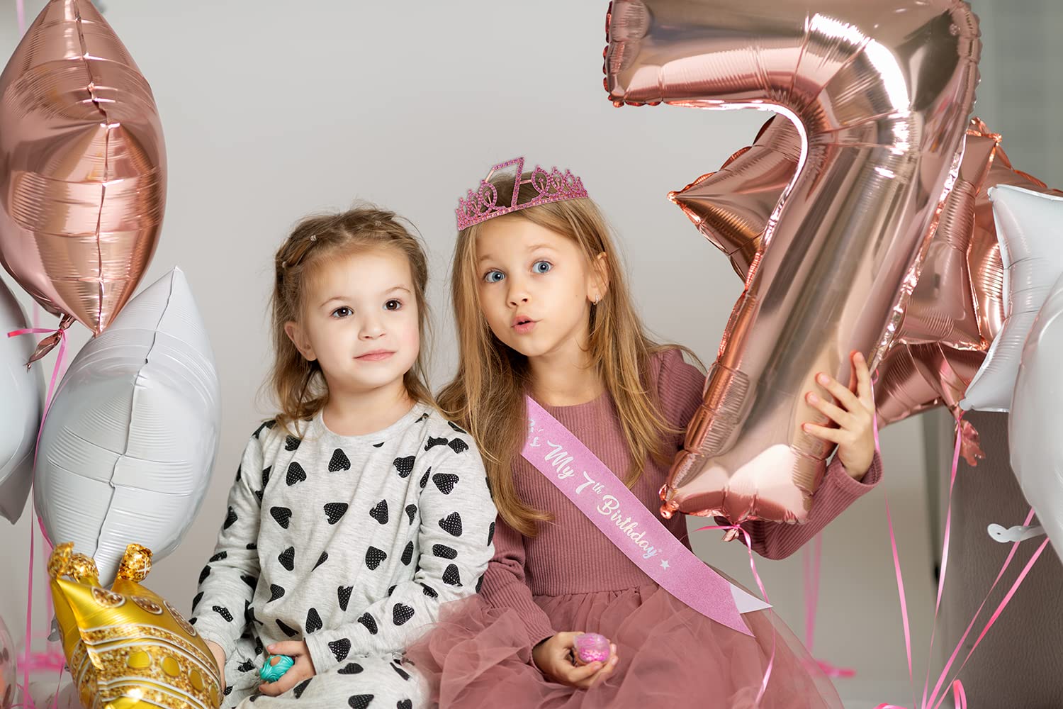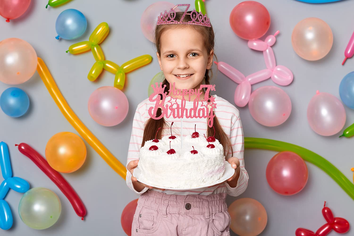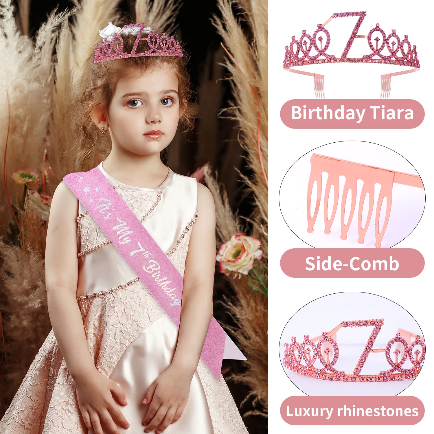 【Package Include】Pink 7 Birthday Candle,Rose Gold 7 Birthday Sash, 7 Birthday Crown/Tiara, Happy 7th Birthday Cake Topper, 32inch Number 7 digital come with a pink gift box;All you needs for a girl's 7th birthday party decor are have;