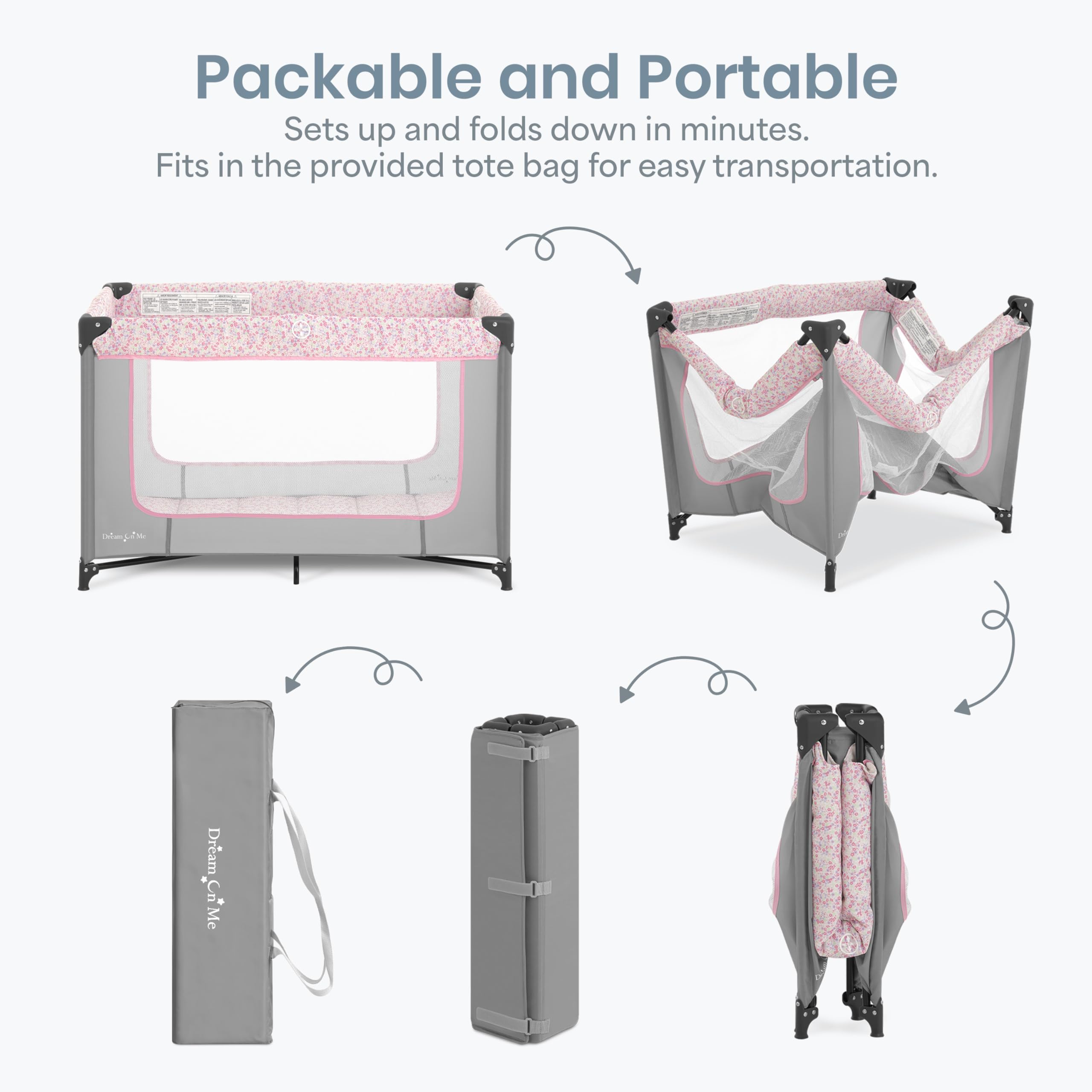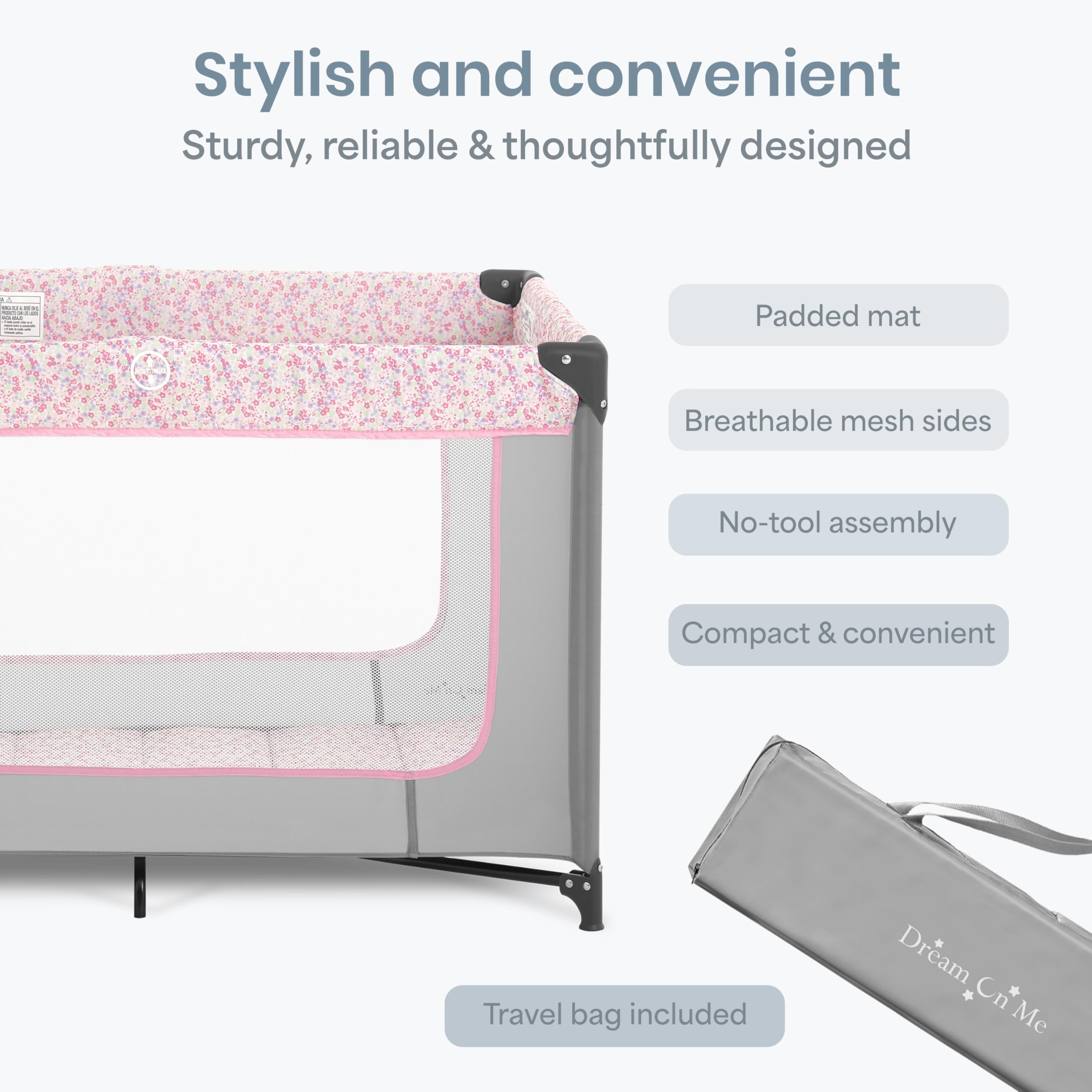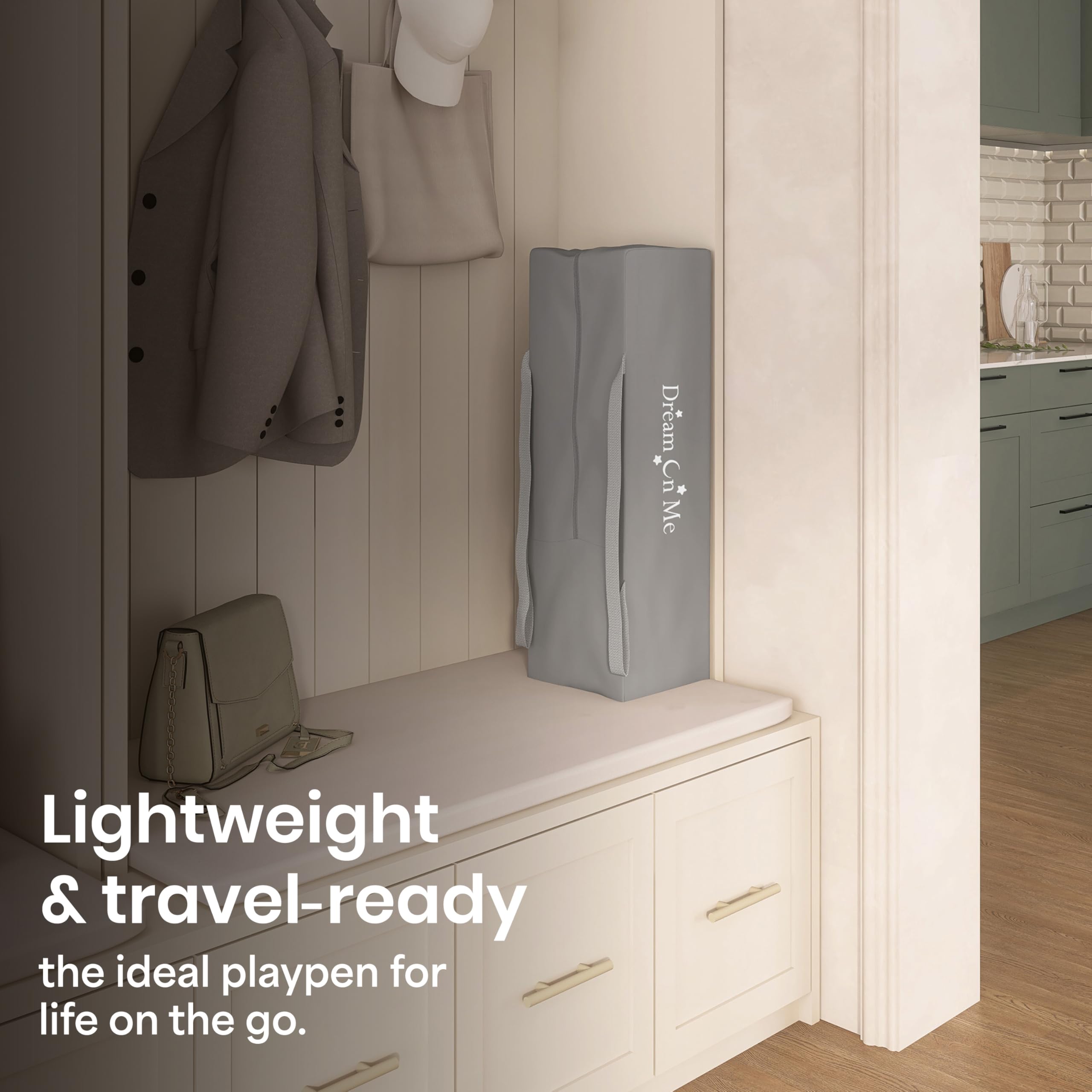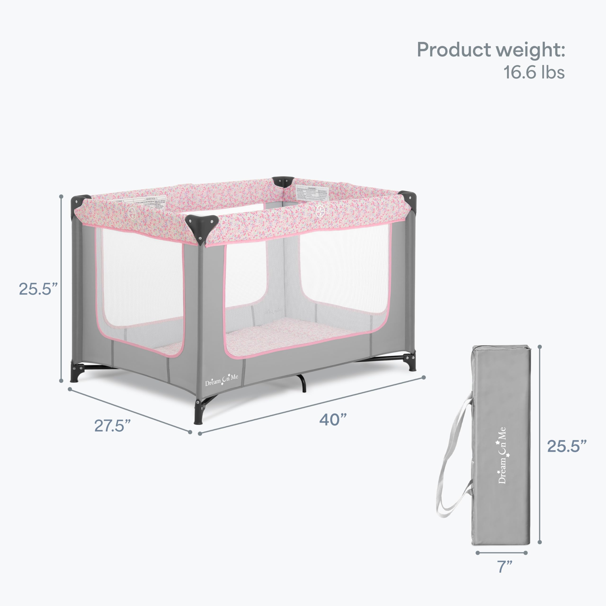 Life with a little one is always on the move, and the Dream On Me Zodiak Portable Playard is designed to keep up with every moment. Created for modern, on-the-go families, this lightweight playard weighs just 16.6 lbs and folds easily into the included travel bag, making it simple to carry, store, or take along for vacations, visits to grandparents, or everyday adventures. Setting up the Zodiak Playard is quick and stress-free. With no tools required, it assembles in minutes and folds down just as easily for travel or storage. A strong, stable frame provides dependable support, giving parents confidence during daily routines at home or wherever the day takes them. Your child’s comfort and connection are always a priority. The playard features full breathable mesh sides that promote healthy airflow while allowing you to keep a clear view of your little one at all times. The open mesh design helps your child feel calm and connected to their surroundings, whether they’re resting or playing. Safety is thoughtfully built into every detail. Designed to meet ASTM safety standards, the Zodiak Playard creates a secure, comfortable environment for children under 35 inches in height and up to 30 lbs. Parents can rest easy knowing their child is supported in a well-ventilated, visible space. Inside, a spacious interior measuring 37” L x 27.5” W x 25.5” H provides plenty of room for play, rest, and diaper changes. The padded mattress offers a cozy, supportive surface, making the playard suitable for use from infant (6 months) through toddler stages. When life gets messy, cleanup is simple. The playard features a removable mattress cover and wipeable surfaces for quick and easy maintenance. It folds neatly into the included tote bag with compact folded dimensions of 7” W x 25.4” H, and is backed by a 1-year limited warranty for added peace of mind.