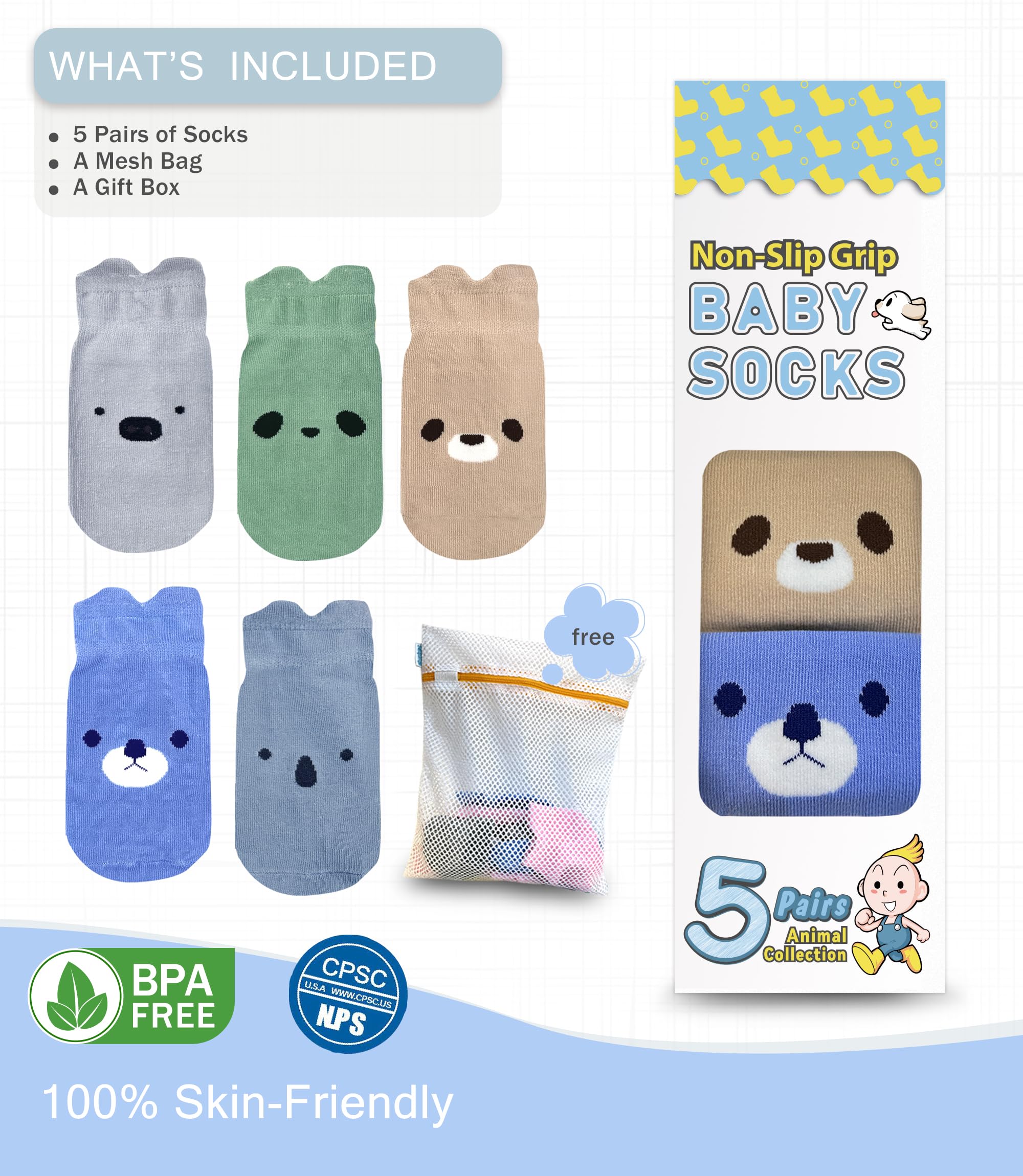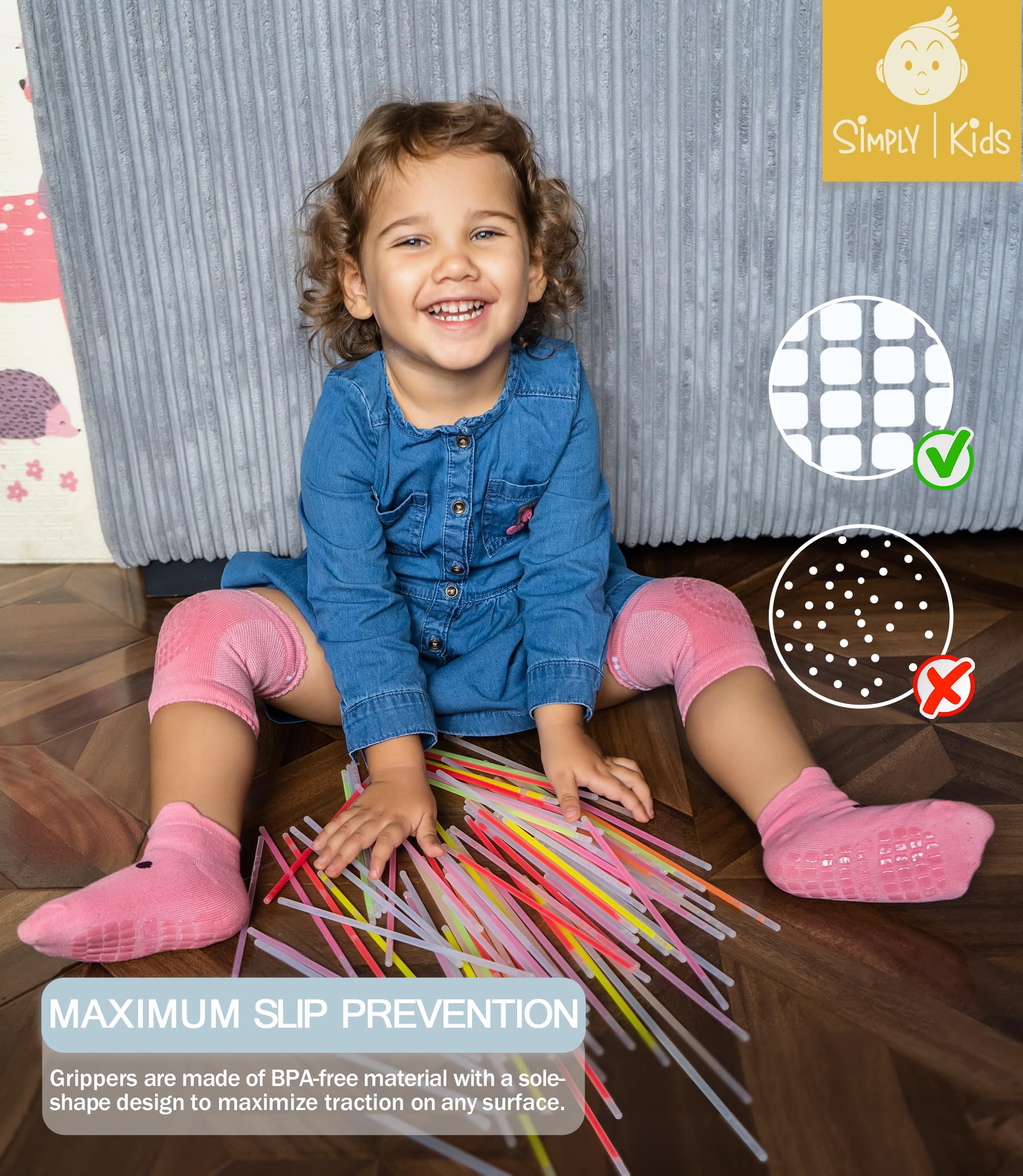 ✅ NON-SKID SOCKS FOR YOUR BABY'S SAFETY Unique square-grips design provides extra traction and stability, allowing child to confidently take their first steps on both wooden and tile floors.