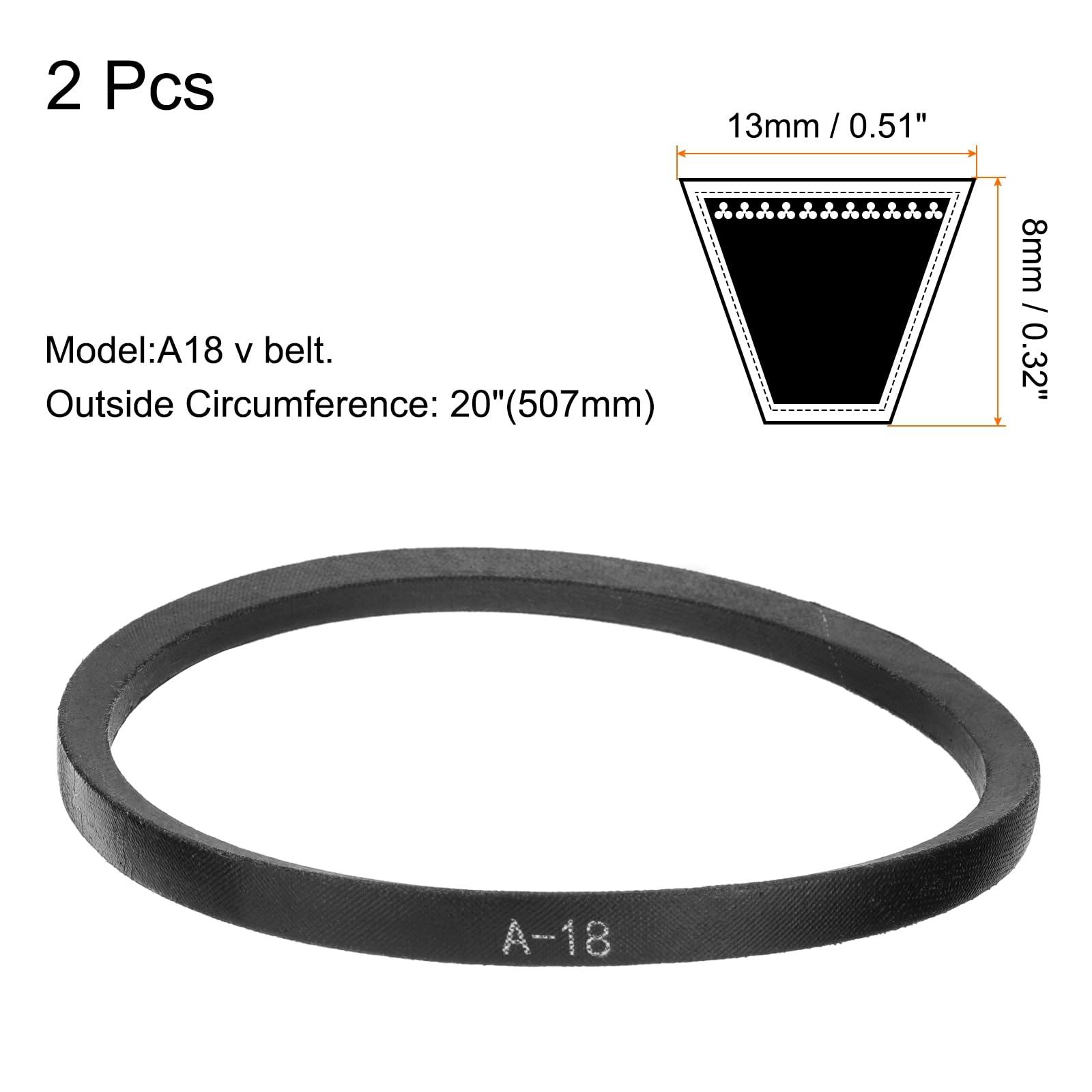 Model: A18 or 4L200 v belt. Inner Circumference: 18" (457mm); Outside Circumference: 20" (507mm).
