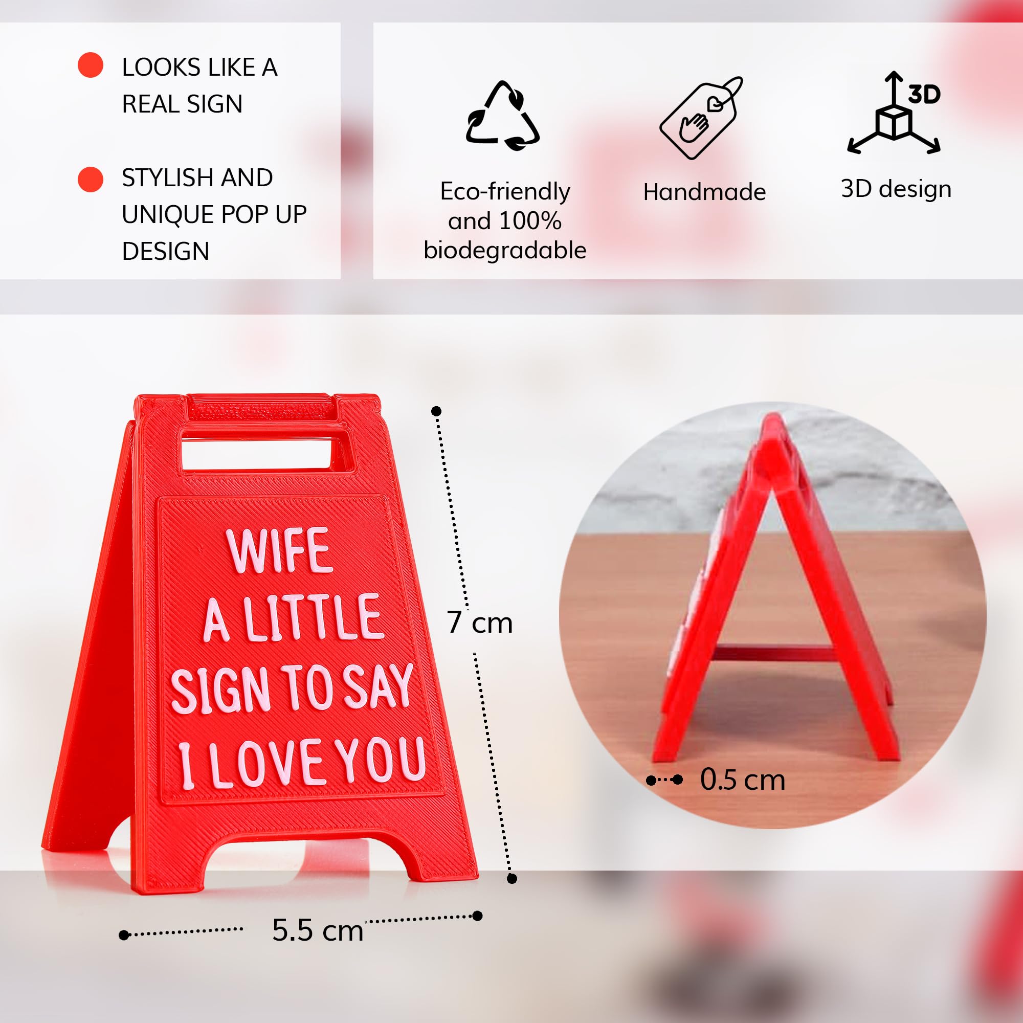 Looking for a romantic gift for your wife that’s different from the usual flowers or chocolates? Surprise her with this Mini Wet Floor Sign – “Wife, A Little Sign to Say I Love You.” This quirky little sign transforms an everyday caution sign into a fun and heartwarming gesture of love. Whether it’s for Valentine’s Day, your anniversary, her birthday, or just a sweet surprise, it’s a gift that blends humor with romance. Compact and durable, it makes the perfect desk accessory, bedroom decoration, or conversation piece—a constant reminder of your love in a fun and original way. Make her smile with a gift that says “I love you” in the cutest and most unexpected way.