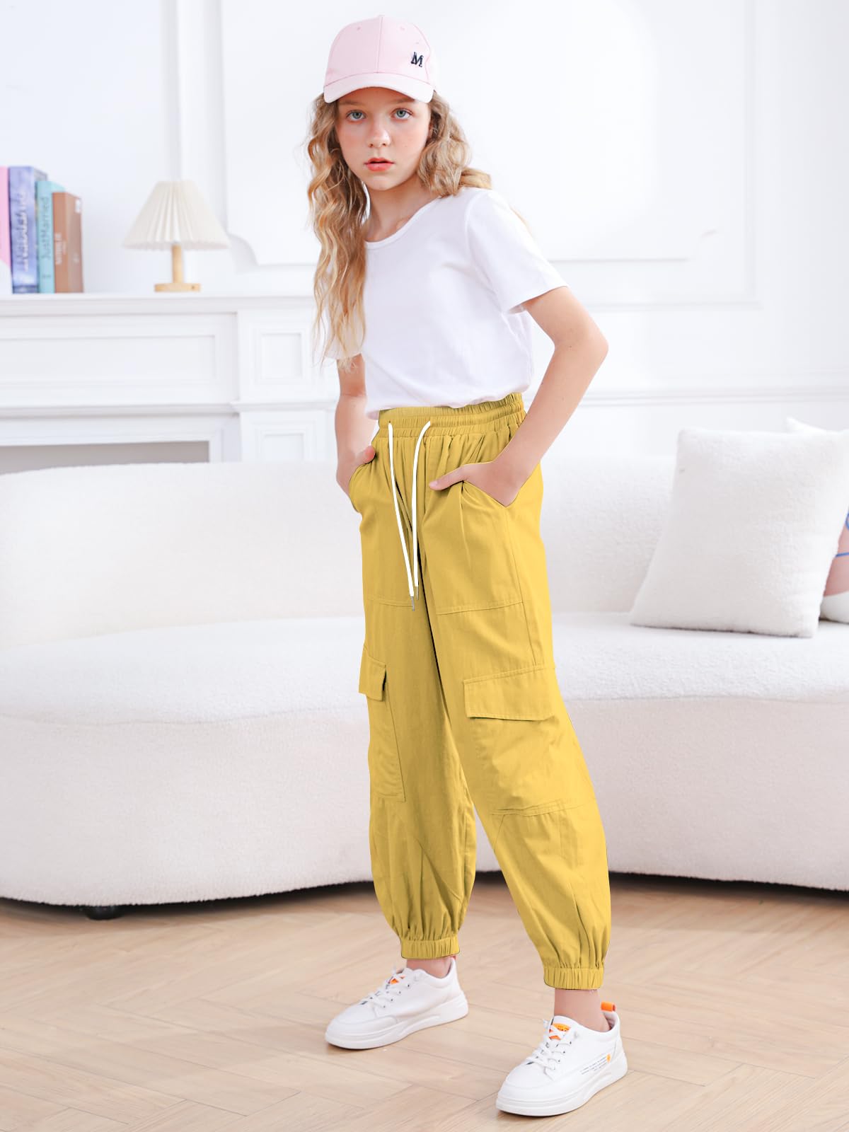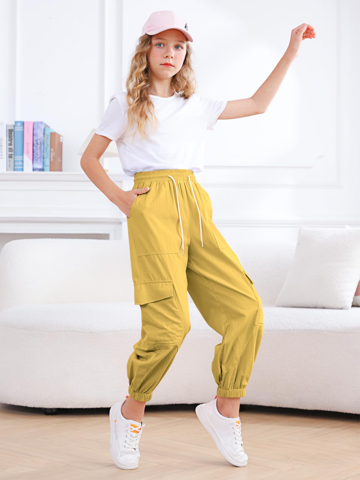 Design:Elastic waist design and drawstring,elastic ankle cuffs,Loose and easy to adjust.Cargo jogger pants perfect for active girls and won't have bound feeling.
