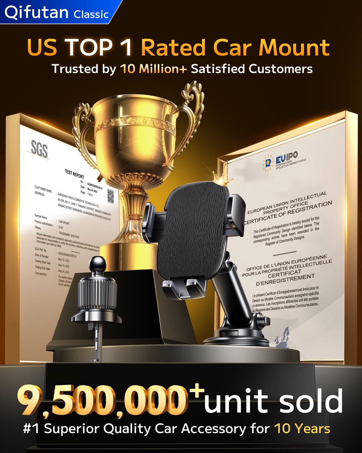 Versatile Car Phone Holder: This dash cell phone mount for automobiles boasts superior suction power and an enhanced air vent clip, providing versatile installation options on windshields, dashboards, and air vents.