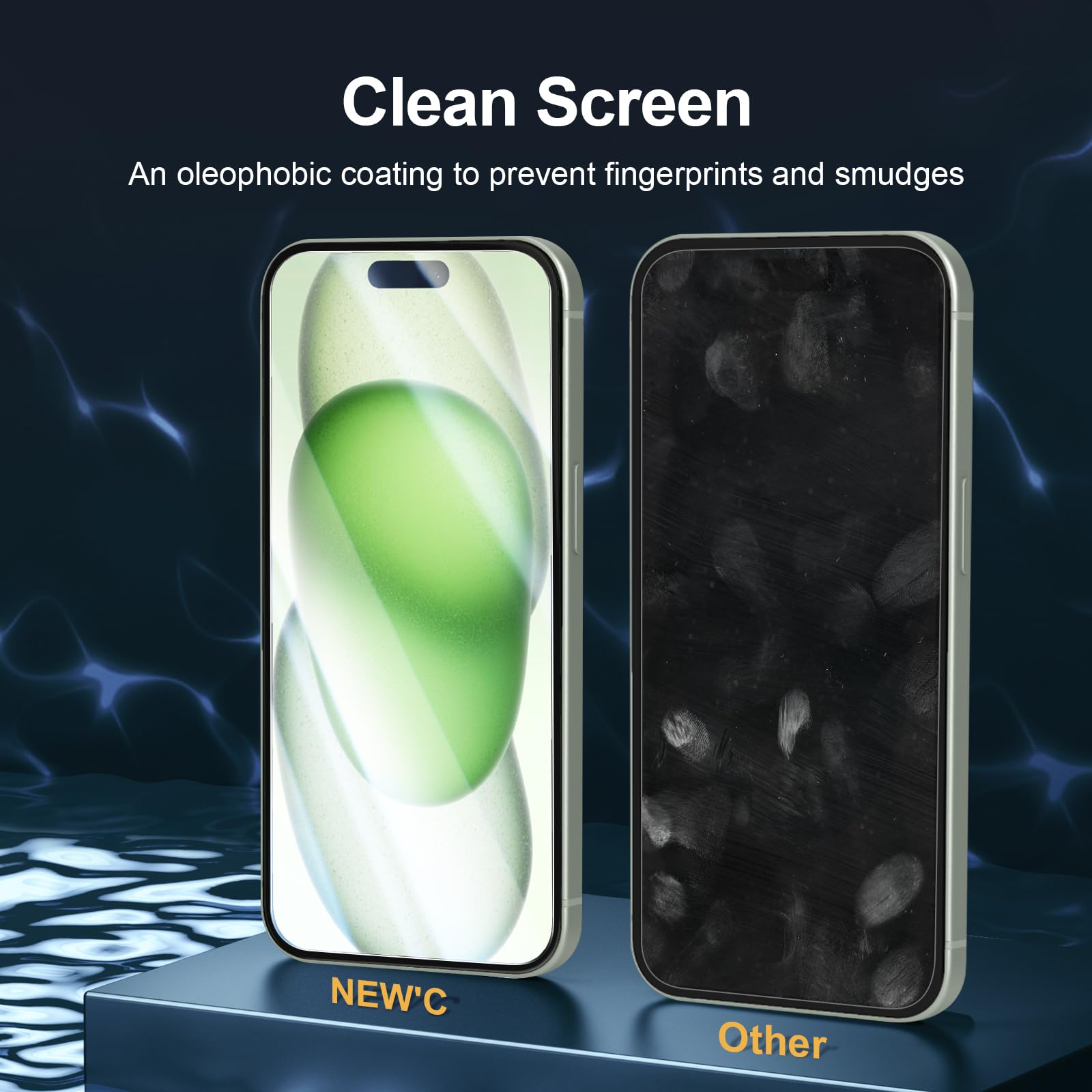 NEW'C Tempered Glass Screen Protector for iPhone 16 Plus,15 Plus (6.7 inches). Preserved touch sensitivity: a silicone adhesive coating that makes installation easy and durable while preserving the phone's touch qualities.