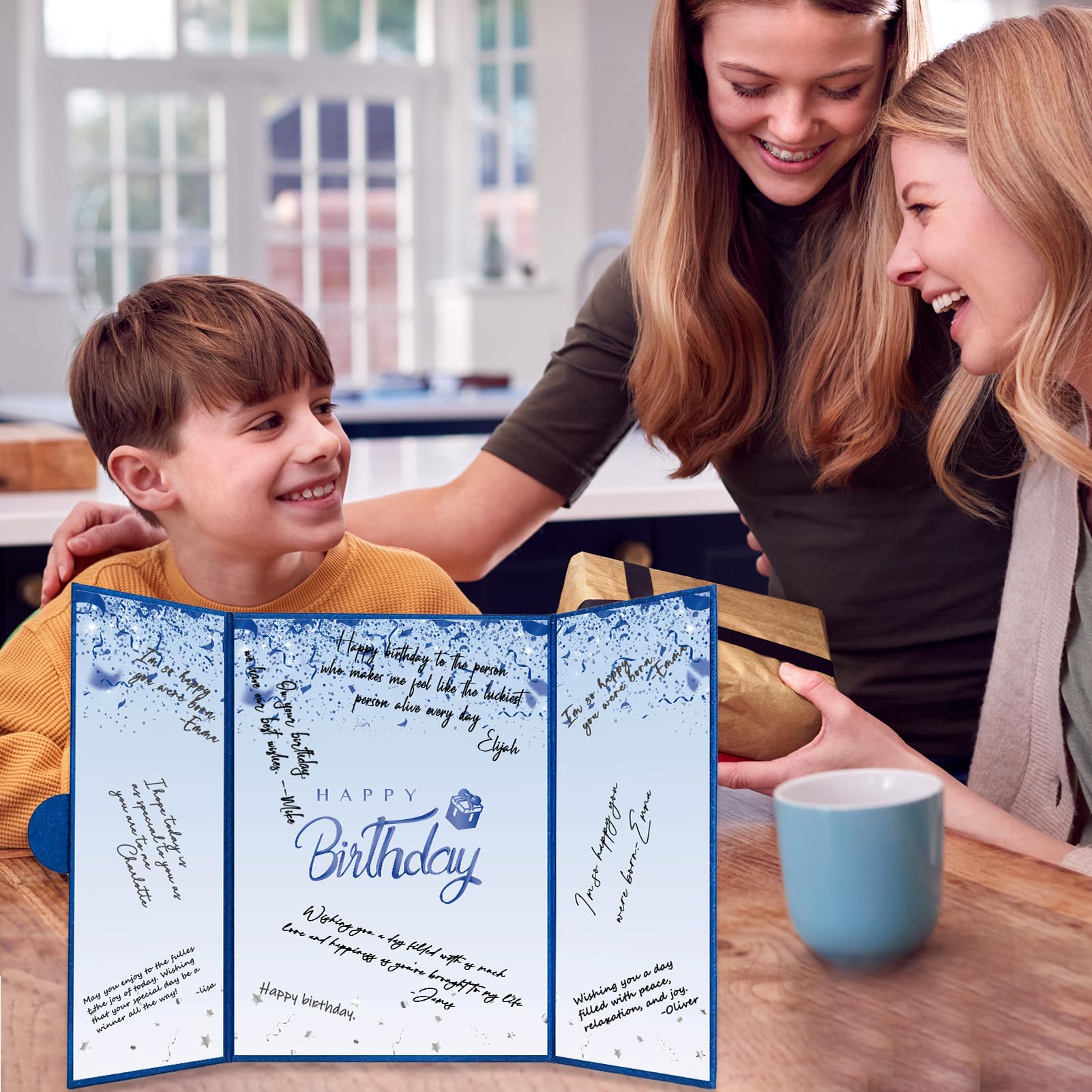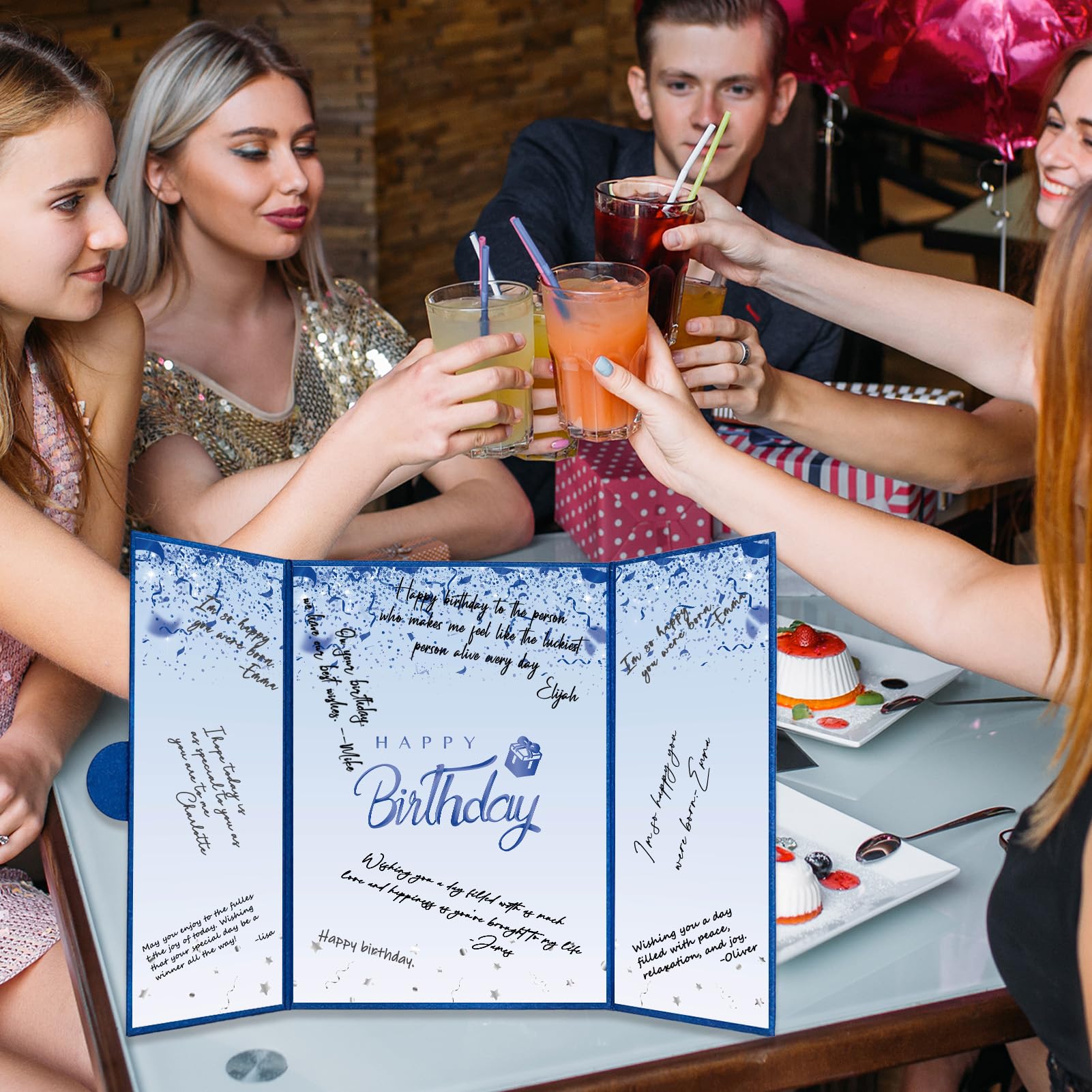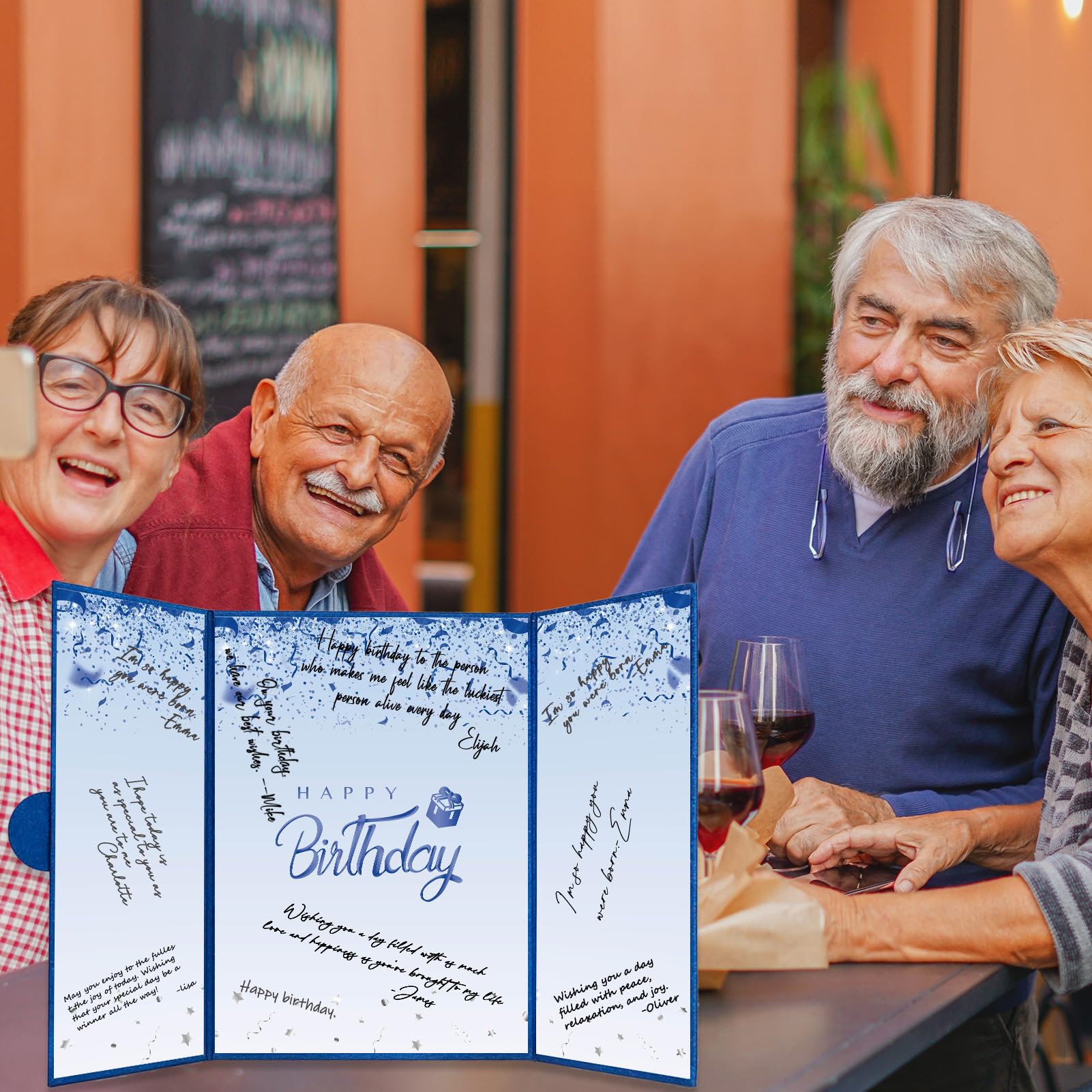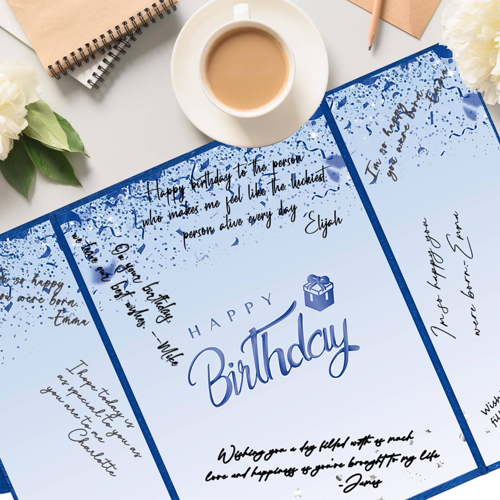 【Exquisite Design】- The blue certificate has a badge on the cover, and the inside of the signature certificate is divided into three parts, the middle page is printed with the message 'Happy Birthday'. This blue birthday signature guestbook can be opened directly and stand on the table. Tips: No pen.
