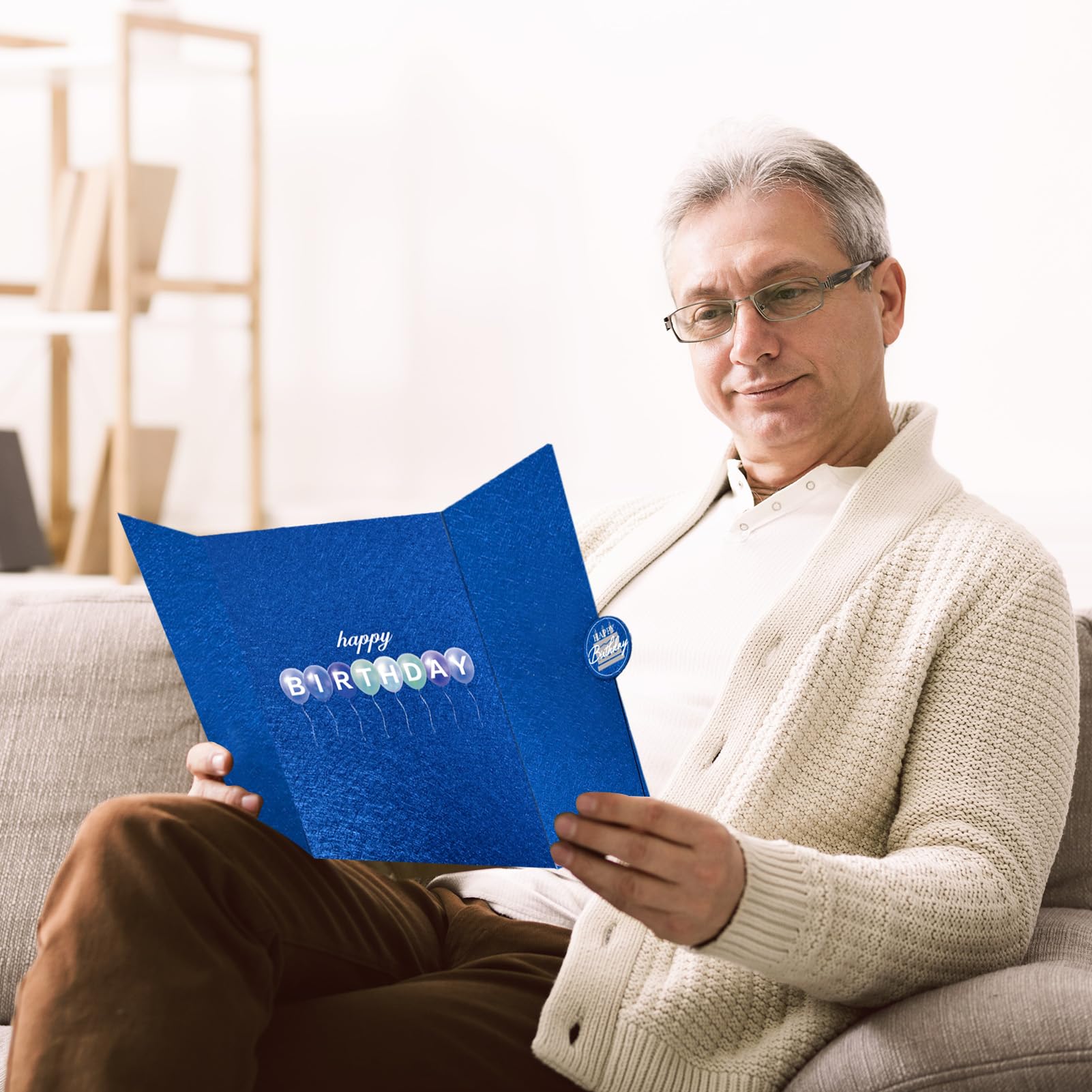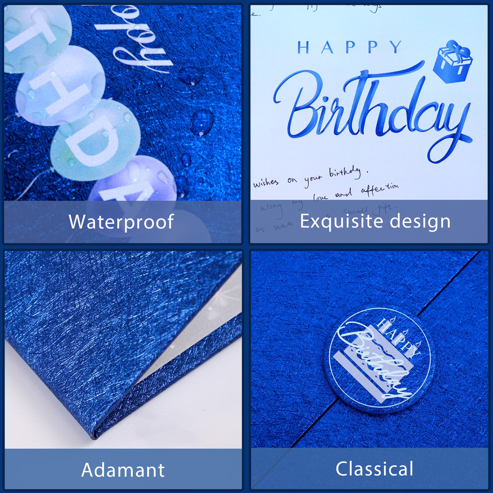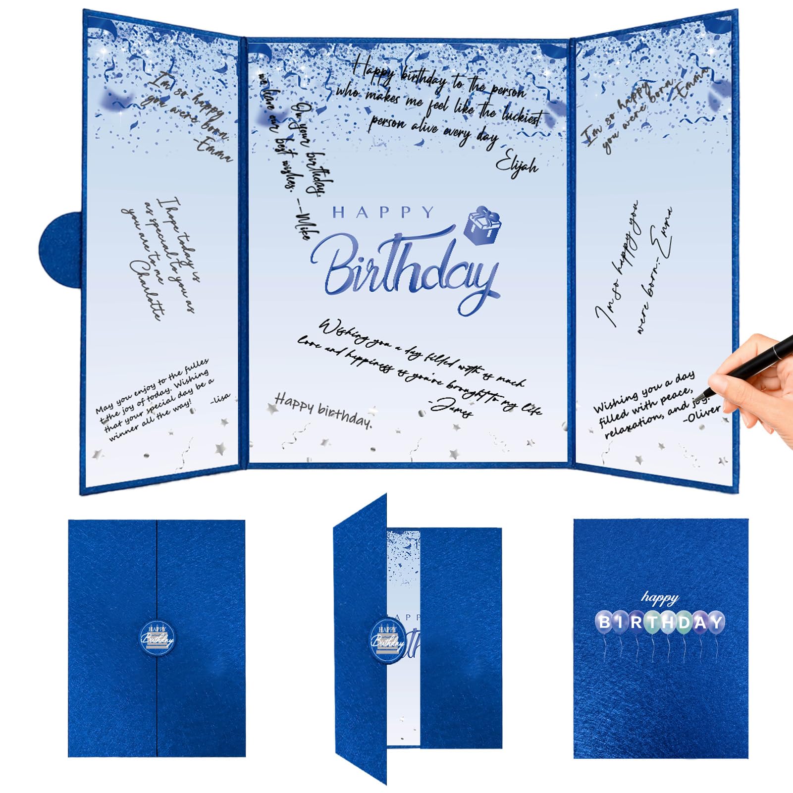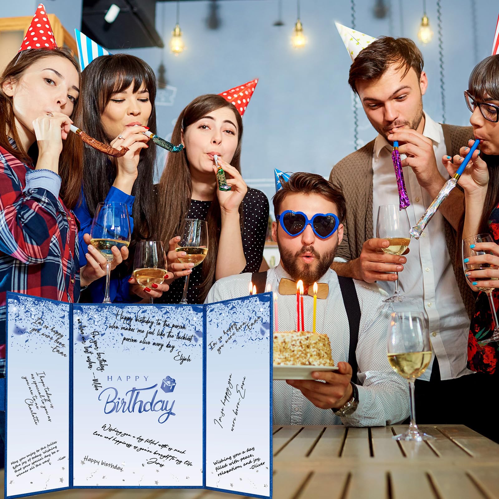 【Exquisite Design】- The blue certificate has a badge on the cover, and the inside of the signature certificate is divided into three parts, the middle page is printed with the message 'Happy Birthday'. This blue birthday signature guestbook can be opened directly and stand on the table. Tips: No pen.