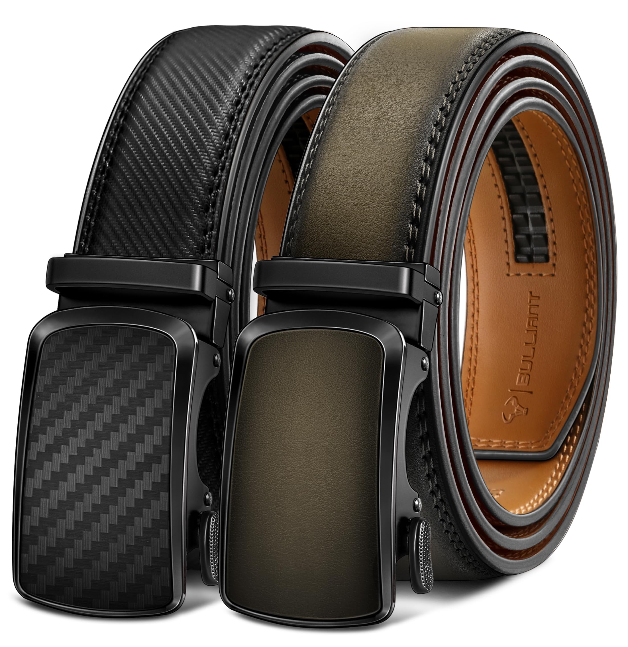PRECIESE FIT--The Bulliant men's belt is installed an slide ratchet with 32 notches and each gapped at 1/4",with this belt,you can get an perfect fit any time for all-day comfort. Just say goodbye to the hassle of belts that are too tight or too loose;