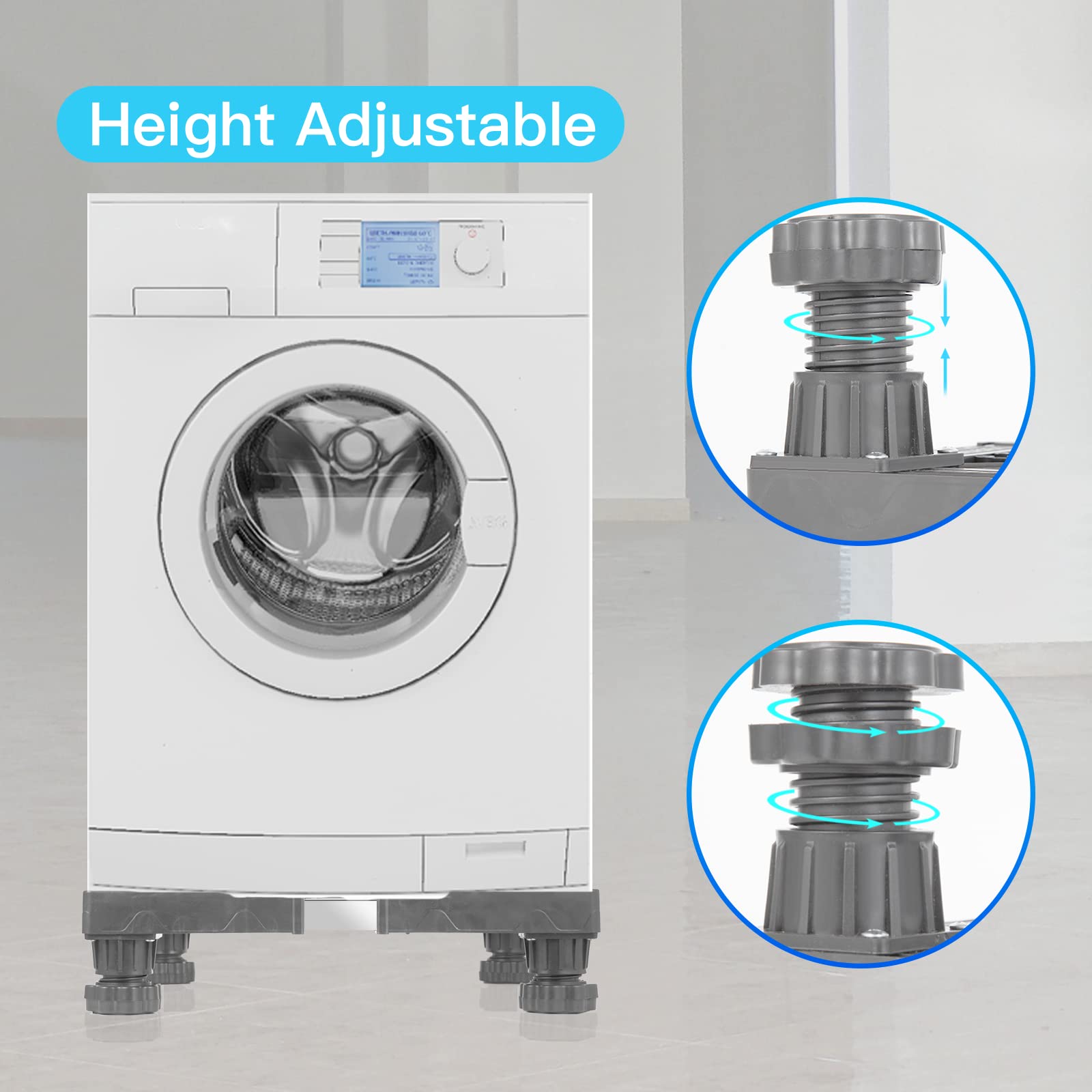Nefish Mini Fridge Stand Adjustable Refrigerator Stand with 4 Strong Feet Universal Stand Base Washing Machine Stand Washer and Dryer Pedestals Multi-Functional Base for Appliance (Grey)