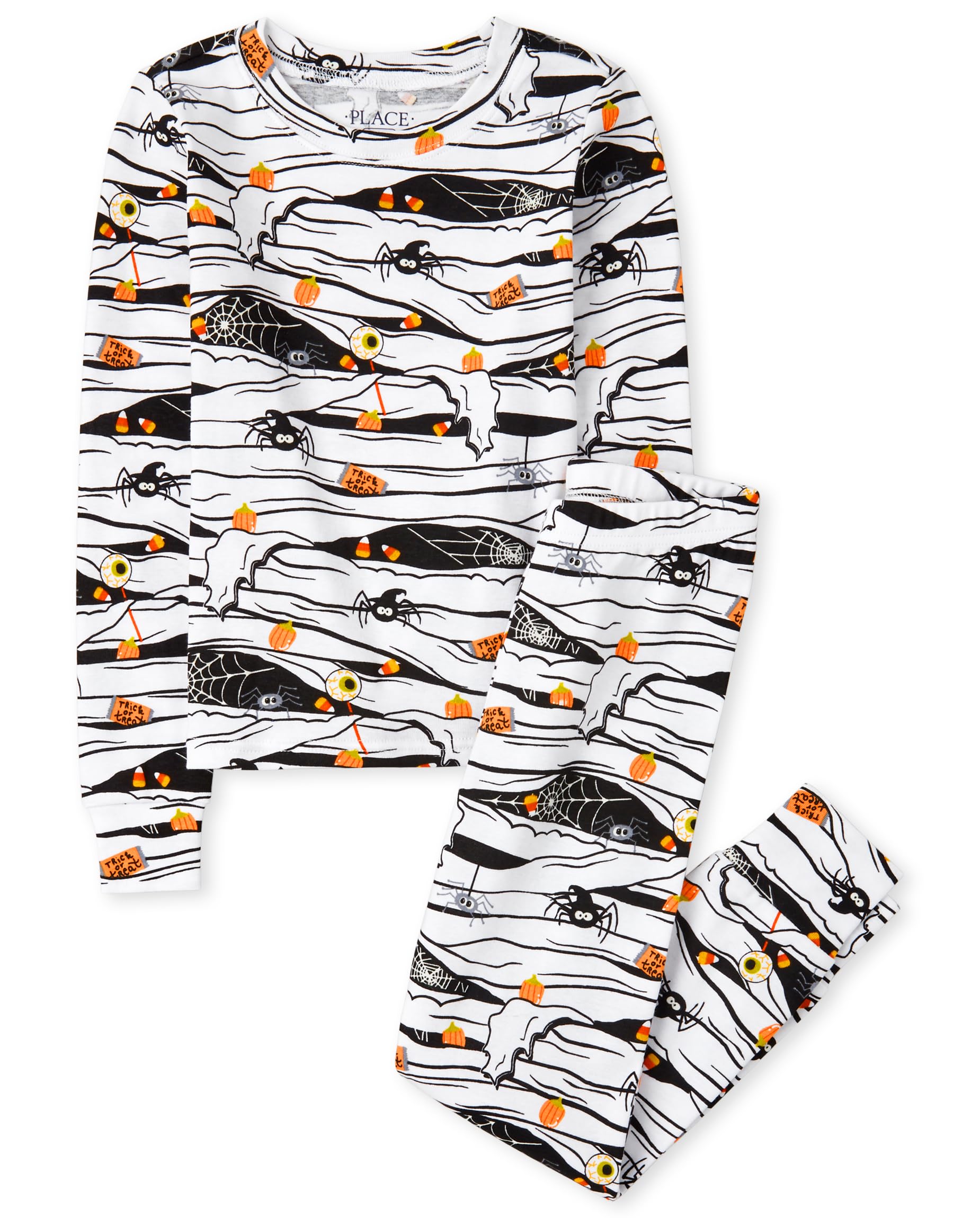 PAJAMA TOP: Rib-knit crew neck, long raglan sleeves, glow in the dark Halloween cat graphic; For best glow effect, expose to light before wearing.