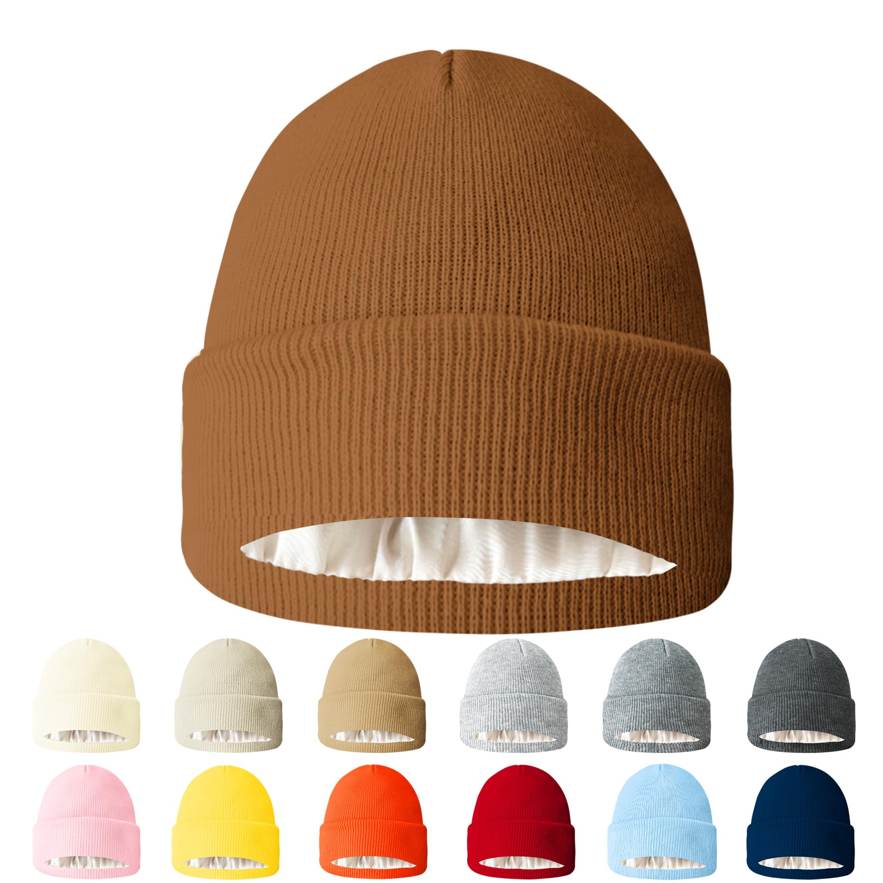 WARM & COMFORT: Feature double layer satin silk lined, you can pull the cuff of beanies down to cover head and ears to keep them extra comforable and warm.The satin lined beanies soft to touch, comfortable to wear when walking, sleeping, working.