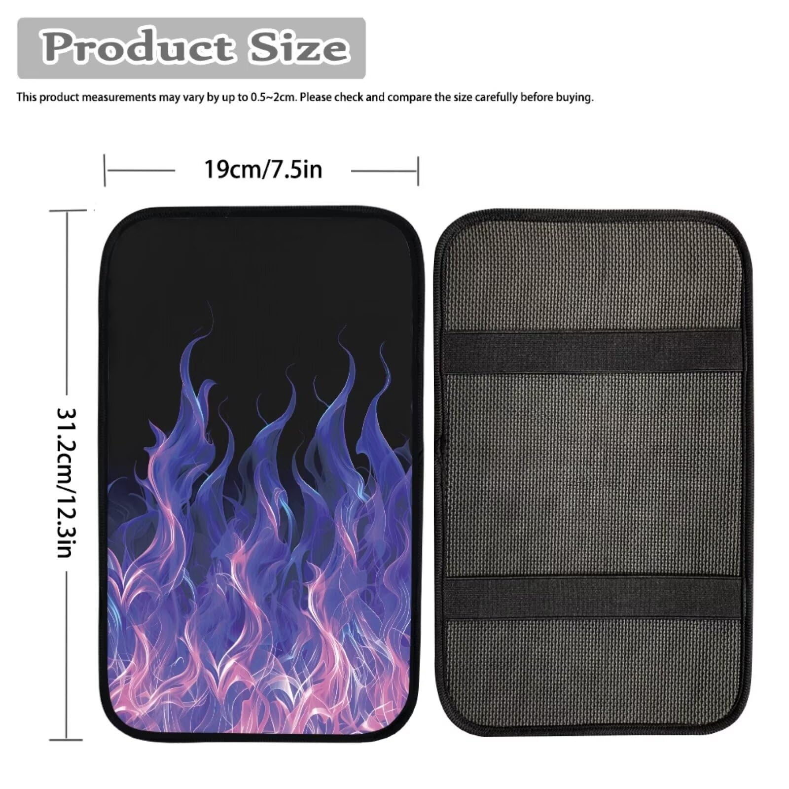 Our armrest pad is 12.6 inch long, 7.5 inch wide that matches most of the auto car center console armrest box, it covers whole top and make it looks different by stylish patterns