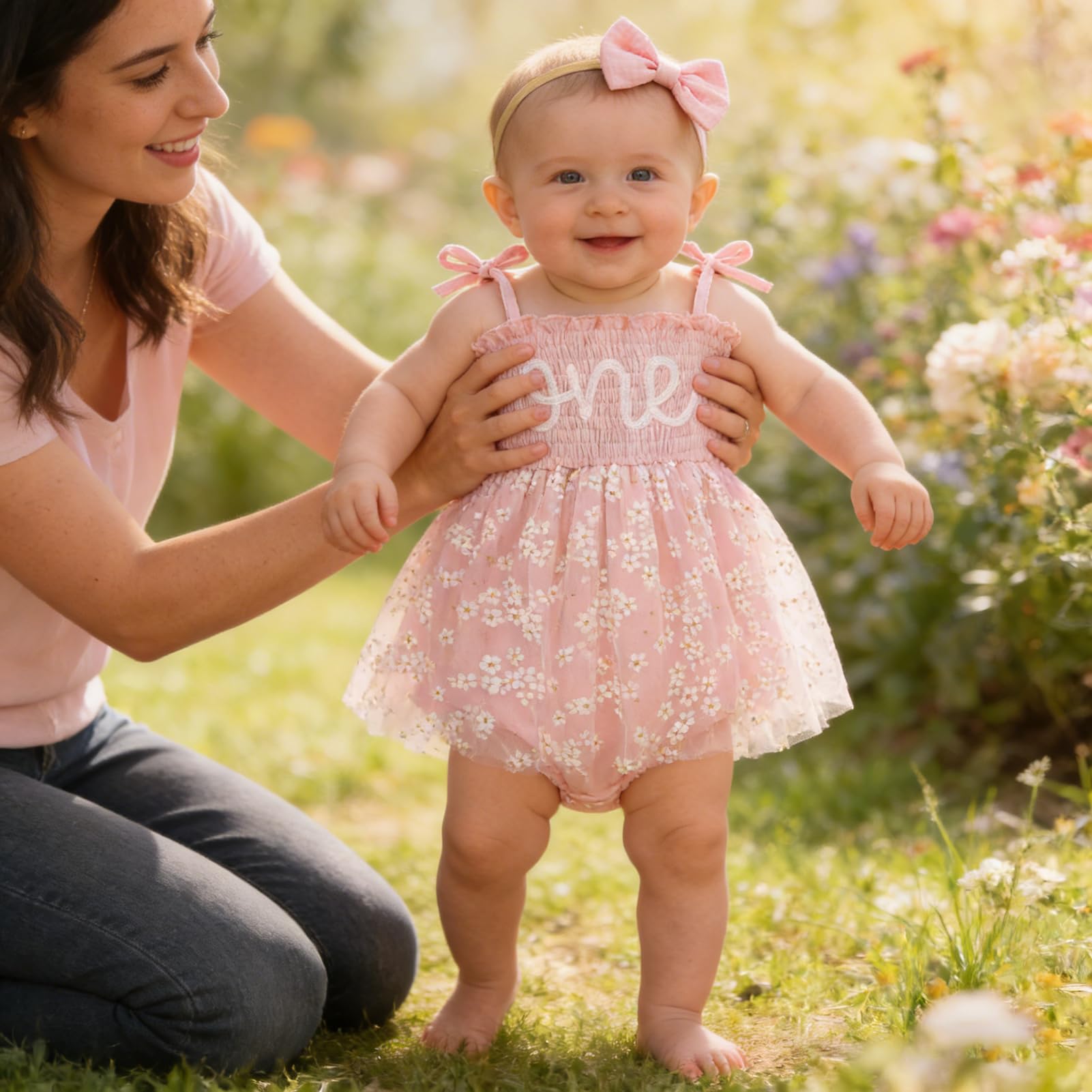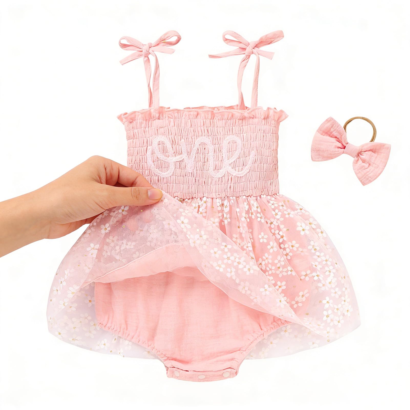 Design: Newborn baby girl playwear romper dress with sleeveless, solid color, multi-layered tulle, Snap leg openings for easy diaper changes, easier morning for novice mother.Cute princess 1st birthday outfit, fashionable and adorable embroidery ONE printed themed birthday clothes perfect for creating beautiful memory of her first birthday.