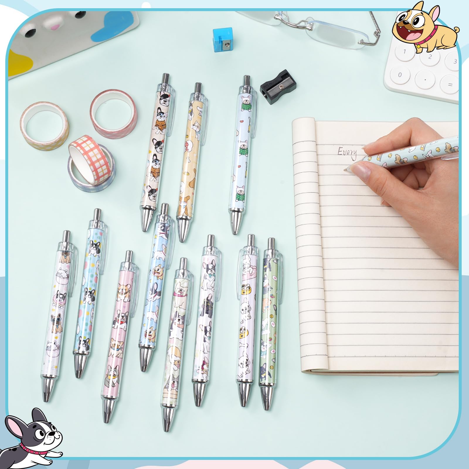 Sufficient quantity: you will receive 12 french bulldog ballpoint pens, 12 different designs, sufficient quantity and diverse styles, enough to meet your daily use and replacement needs, you can share with colleagues, families, they will love them