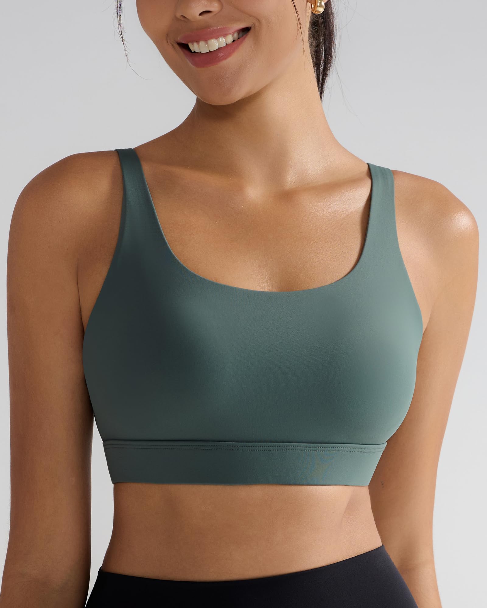 【Your Everyday Secret Weapon】Nail that "effortlessly cool" vibe without sacrificing an ounce of comfort. This isn't your basic sports bra—it's your go-to high support sports bra for everything from WFH days to last-minute errands.Built with supportive 4D-stretch Lycra that hugs you in all the right ways, delivering the secure, medium-high impact support you need with the second-skin comfort you want.