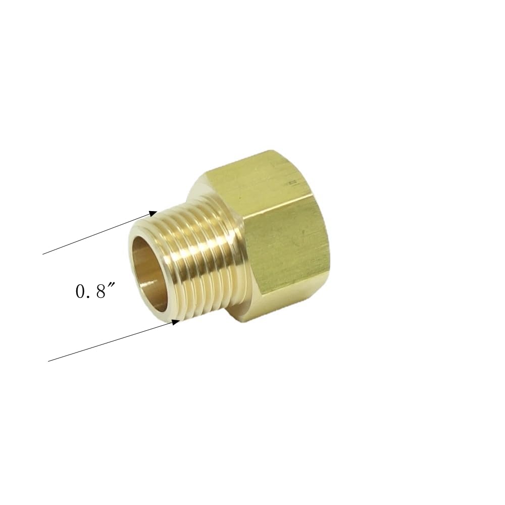 Material : Brass Metric Female End: M22 x 1.5 NPT Male End: 1/2 NPT NPT Male Thread Diameter : around 0.8" Package Includes: 2 Pcs