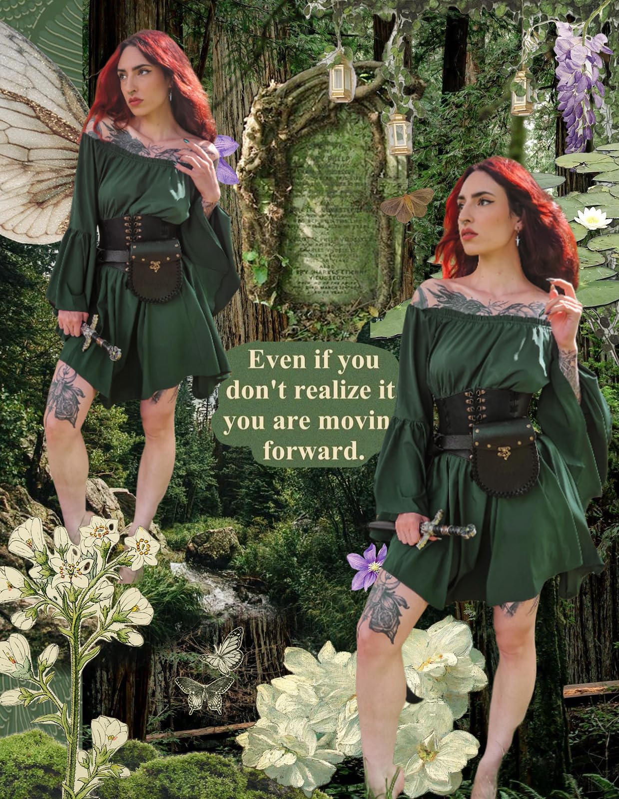 MATCH TIPS - Pair our fairy dress with a corset and lace-up boots to complete the Renaissance look. To enhance the Halloween vibe, add a witch's hat, dark makeup, and a broomstick. Let your imagination run wild and create your unique combinations!