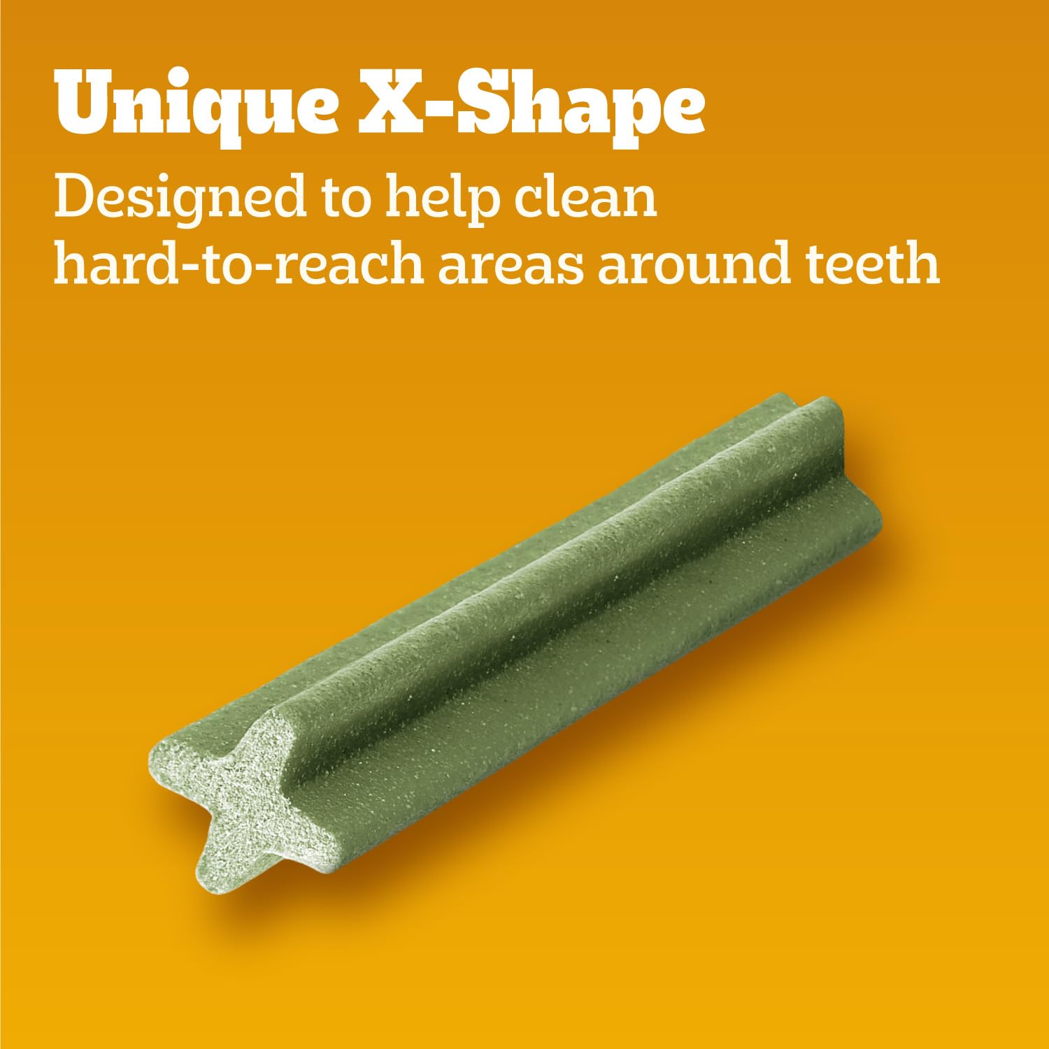 X-Shape Design: Pedigree Dentastix large dog dental chews have a unique X-shape and chewy texture that helps scrape away plaque while chewing to help clean hard-to-reach areas around teeth