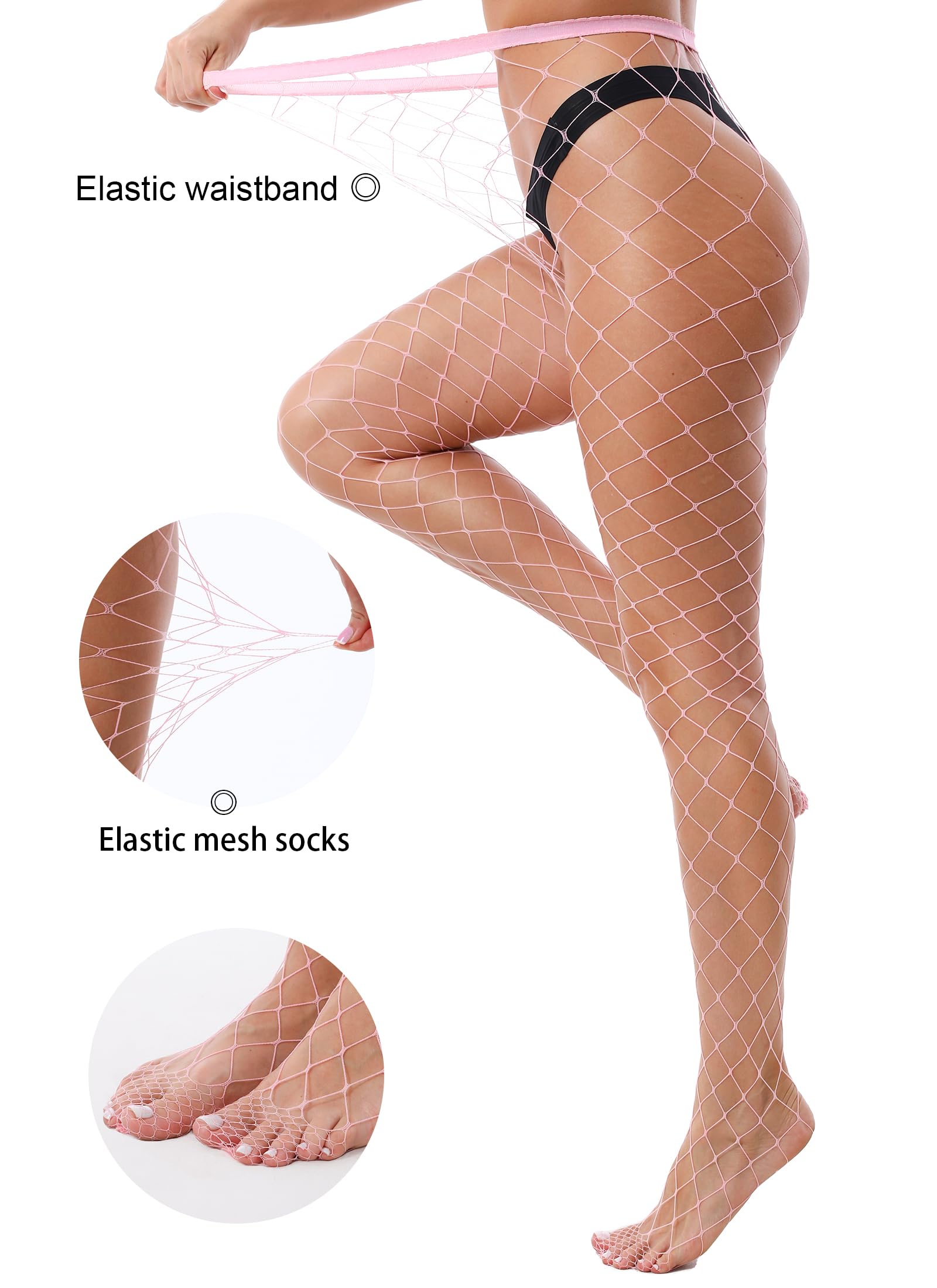 Package Include: 2 Pairs of high waist fishnet tights with two types, Large mesh and Middle mesh.