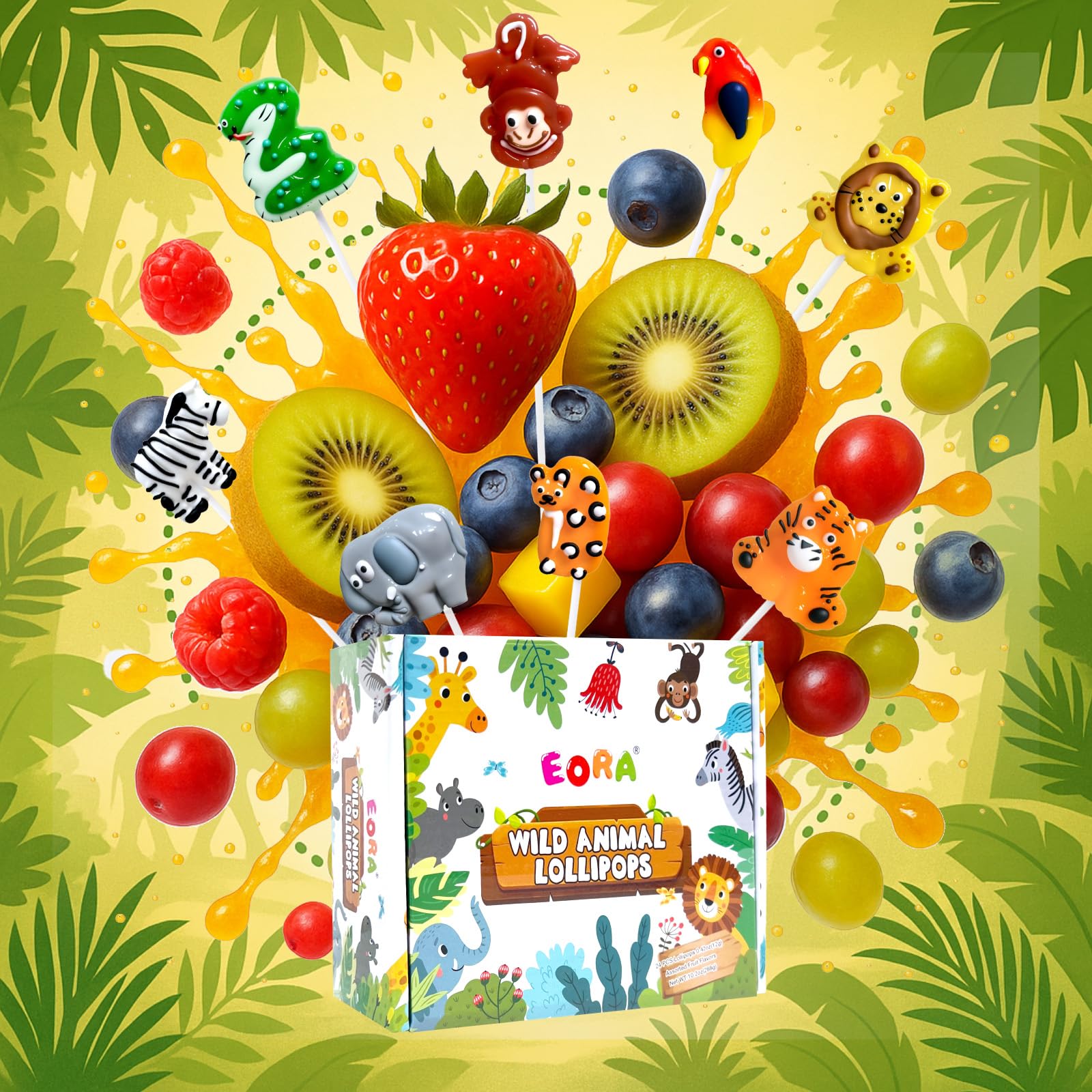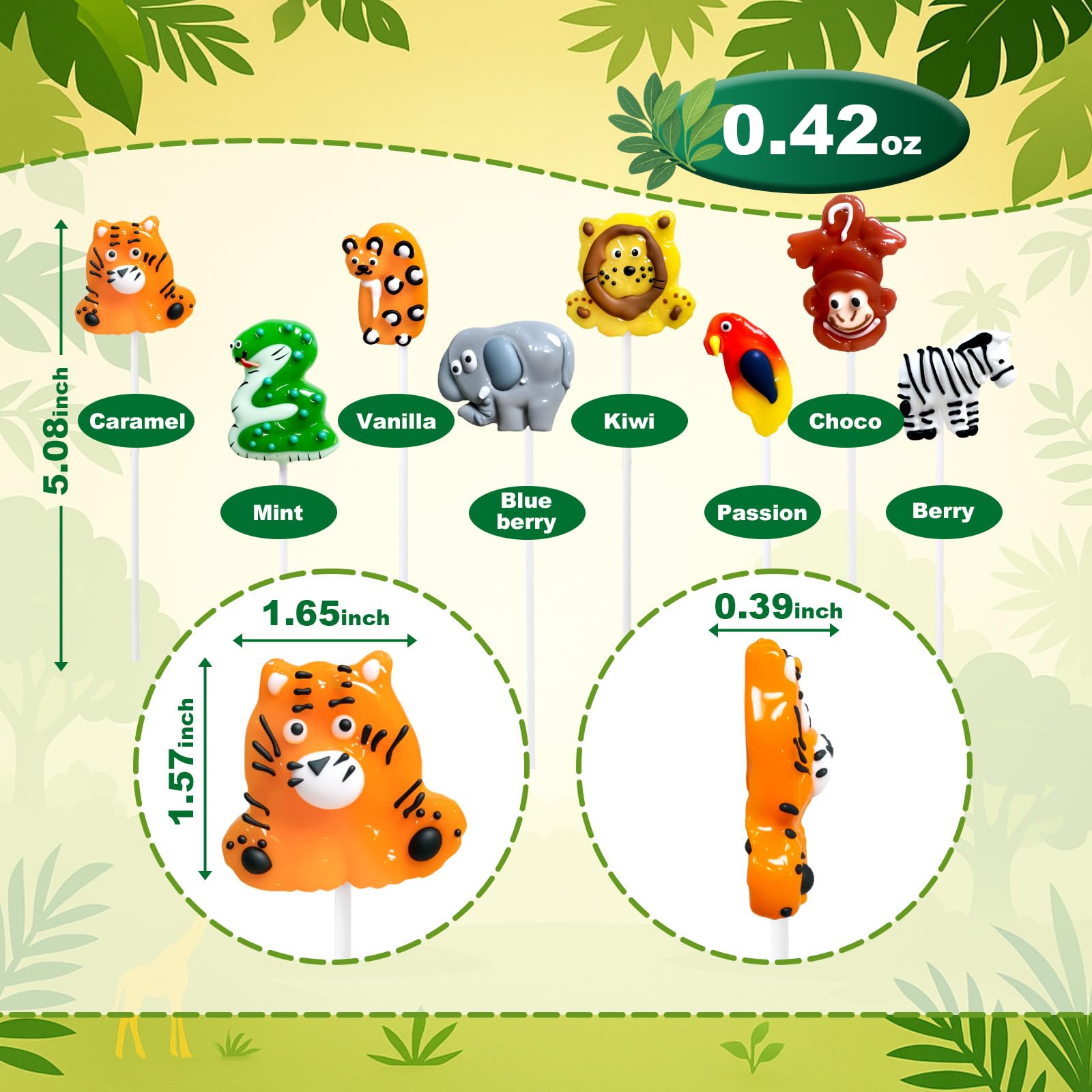Assorted flavors: 24 Pack with 8 different Shapes and Flavors: Lion-shaped (Kiwi fruit) / Jaguar-shaped (Vanilla) / Tiger-shaped (Caramel) / Zebra-shaped (blackberry) / Elephant-shaped (Blueberry) / Bird-shaped (Passion fruit) / Snake-shaped (Mint) / Monkey-shaped (Chocolate). Favor of sweet surprises, perfect for sharing the joy at your celebration and creating utterly unforgettable memories.