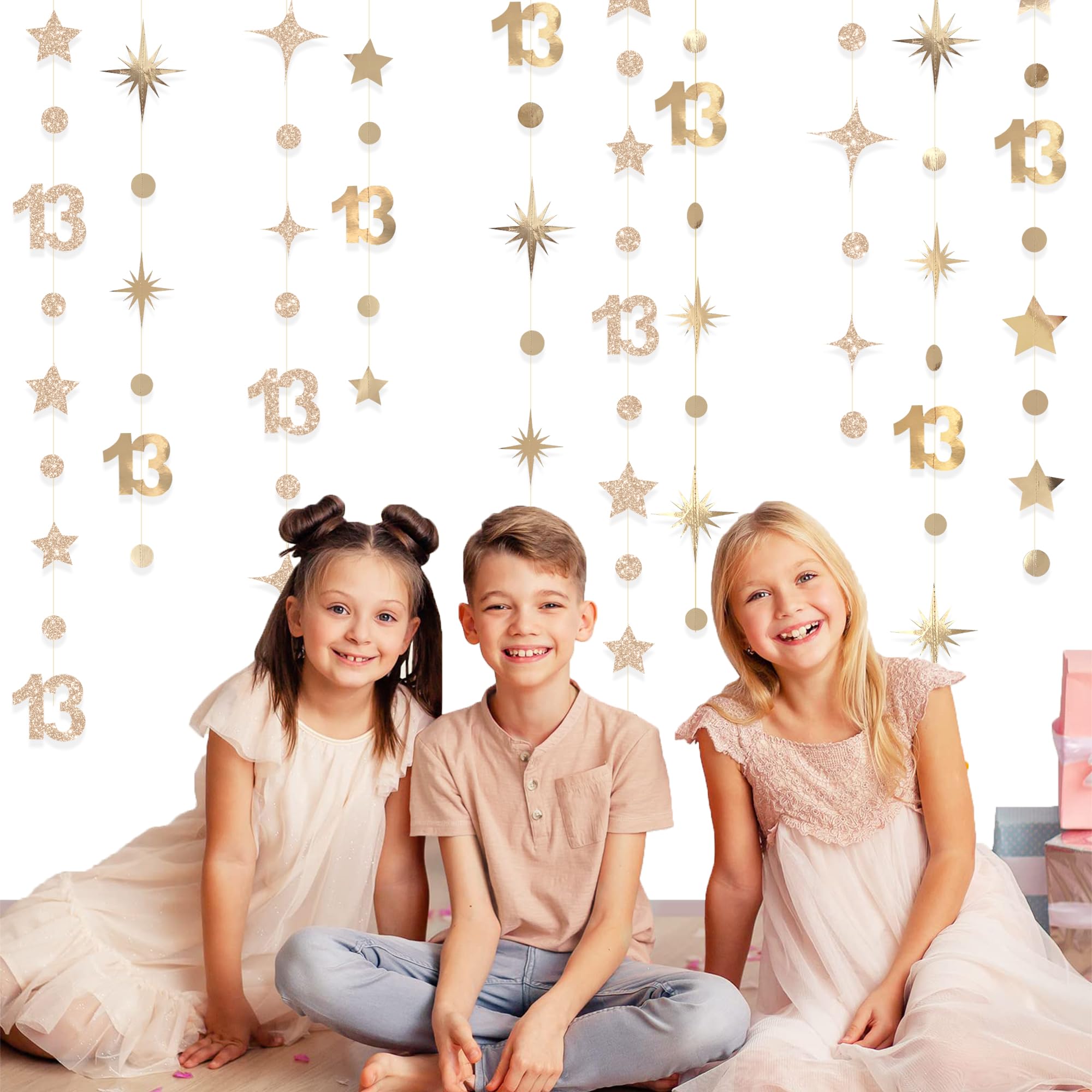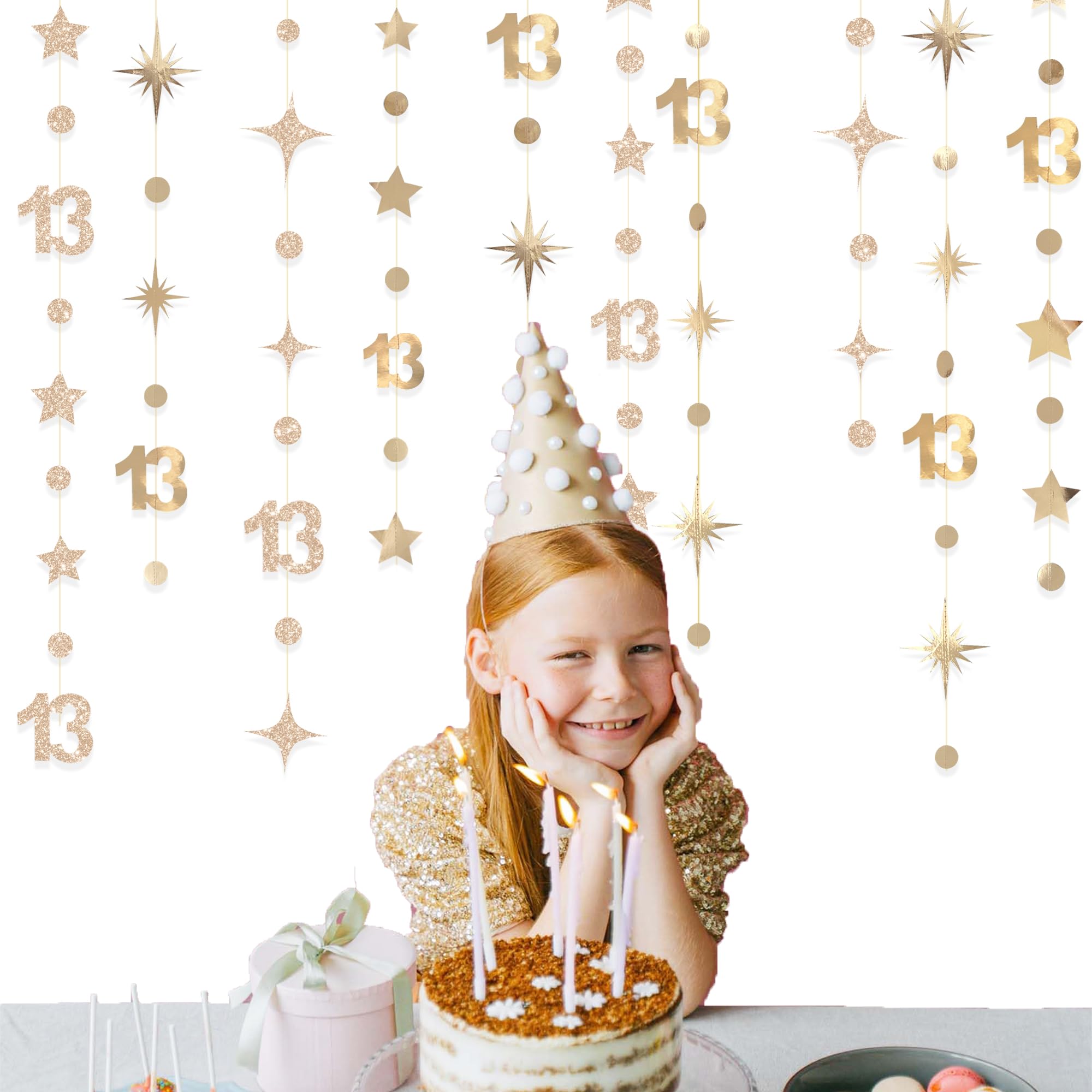 Our Champagne Gold Happy 13th Birthday Party Decorations Kit includes: ✓ 4 Pcs metallic star circle dot garland including number 13We have the perfect decoration party supplies set for the occasion: It’s perfect for: ► 13 birthday decorations ► 13 year old birthday decorations ► 13th birthday decorations for girls ► 13th birthday decorations for boys ► official teenager birthday decorations ►Cheers to 13 years party decorations ►13 official teenager decorations ► Bridal shower ► Engagement ► Anniversary ► Wedding Parties! Our thirteen happy birthday party decorations is ready for its close up - we can't wait to see what memories you create! Have fun!