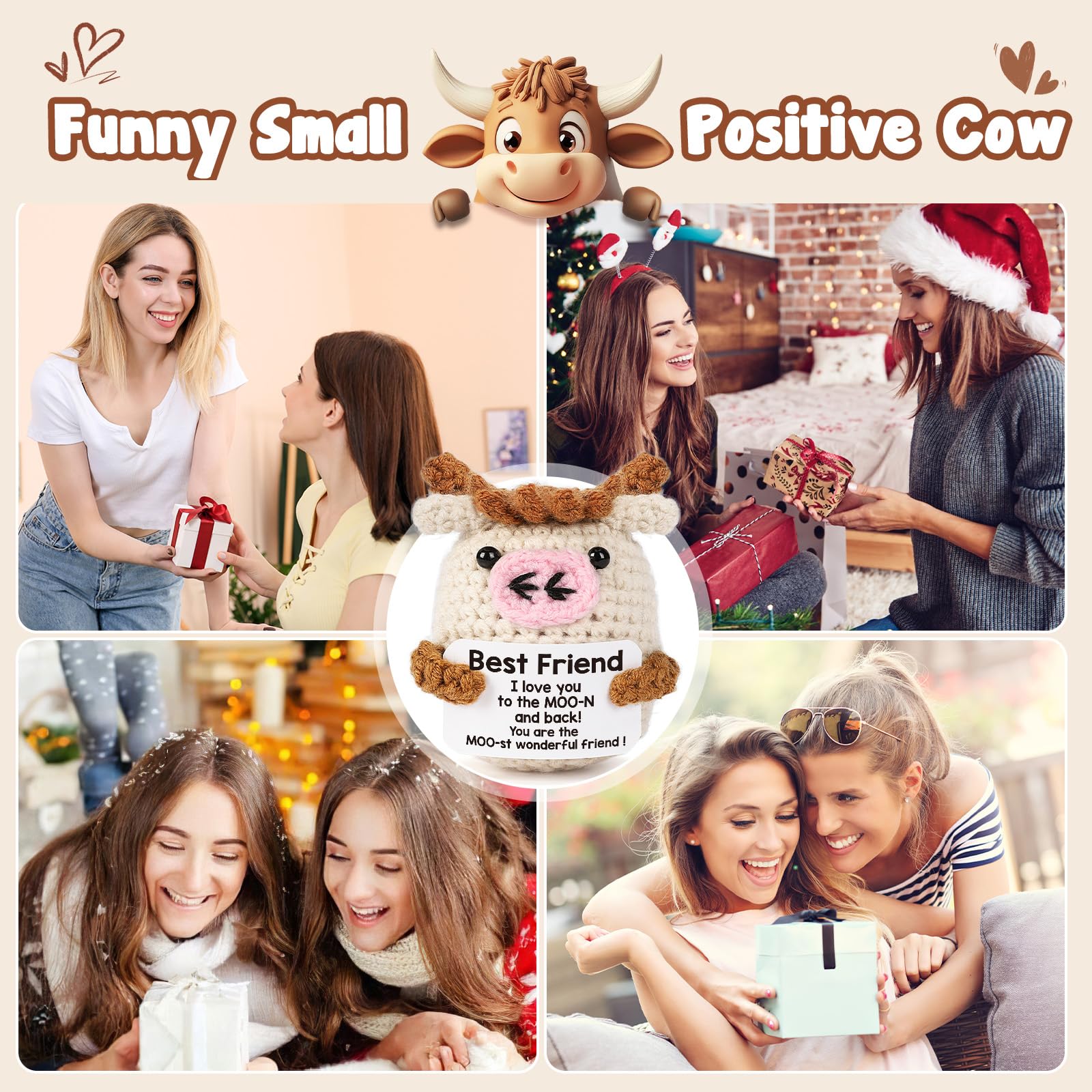 Friend Birthday Gifts for Women: In today’s fast-paced world. Whether best friend at work, home, or on the go, this positive cow doll is perfect for melting away stress and helping her unwind, it can be friend cute companion, always remind her is moo-st wonderful friend
