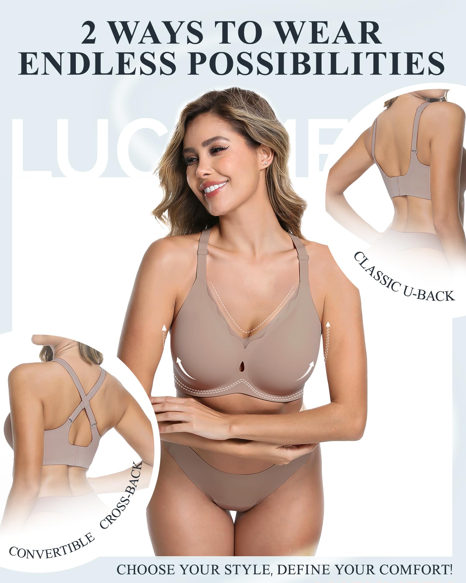 2-Way Convertible & Smoothing U-Back - The adjustable straps can be worn traditionally or crossed for versatility and better lift. The U-back design with wide side straps effectively conceals back fat and underarm bulges, ensuring a smoother look under all your outfits.