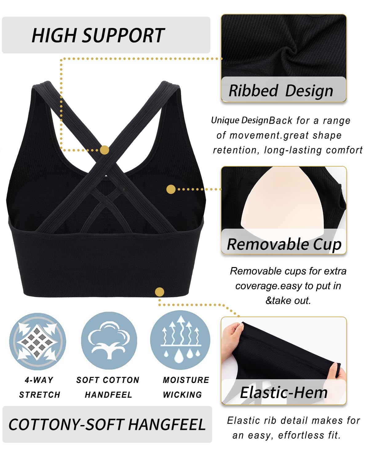 WHY WE MADE THIS:Need a sports bra that does it all? Look no further.This sweat-wicking cross-strappy sports bra gives you the coverage and support you need for yoga, run,and the gym—without restricting your movement or breath fabric has added lycra that allows the sports bras for women to stretch with you and retain its shape over time.Slip in optional for full coverage—if you want it.This high impact sports bras for women is intended to provide great shape retention,long-lasting comfort.
