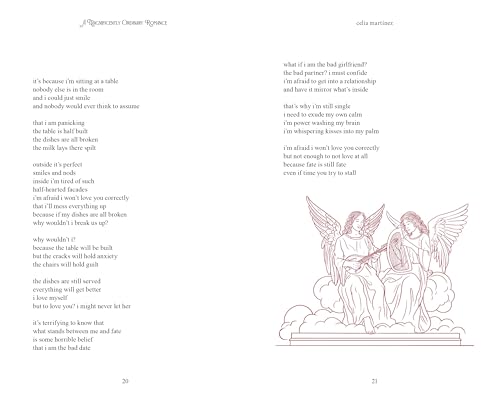 Following the success of her Diary of a Romantica series, Celia Martinez returns to further explore love and all of its magnificent beauty. In A Magnificently Ordinary Romance, social media breakout poet and Yale graduate Celia Martinez (@powerhouseofthecel on TikTok and @diaryofaromantica on Instagram) takes hopeful romantics everywhere on a journey through the timeless adoration and passionate miscommunication of young love. With the vulnerability and intelligence that has gained her an audience of over 4.5 million listeners, readers, and followers, AMOR follows two lovestruck romantics who fall in love a little too quicklyβand even more chaoticallyβbefore learning they are colleagues working in the same building. A twist that proves even more challenging for their equally enamored guardian angels. A unique take on amor, romance, and coming of age, Celia Martinez proves to be a once in a generation voice for a new generation of lovers.