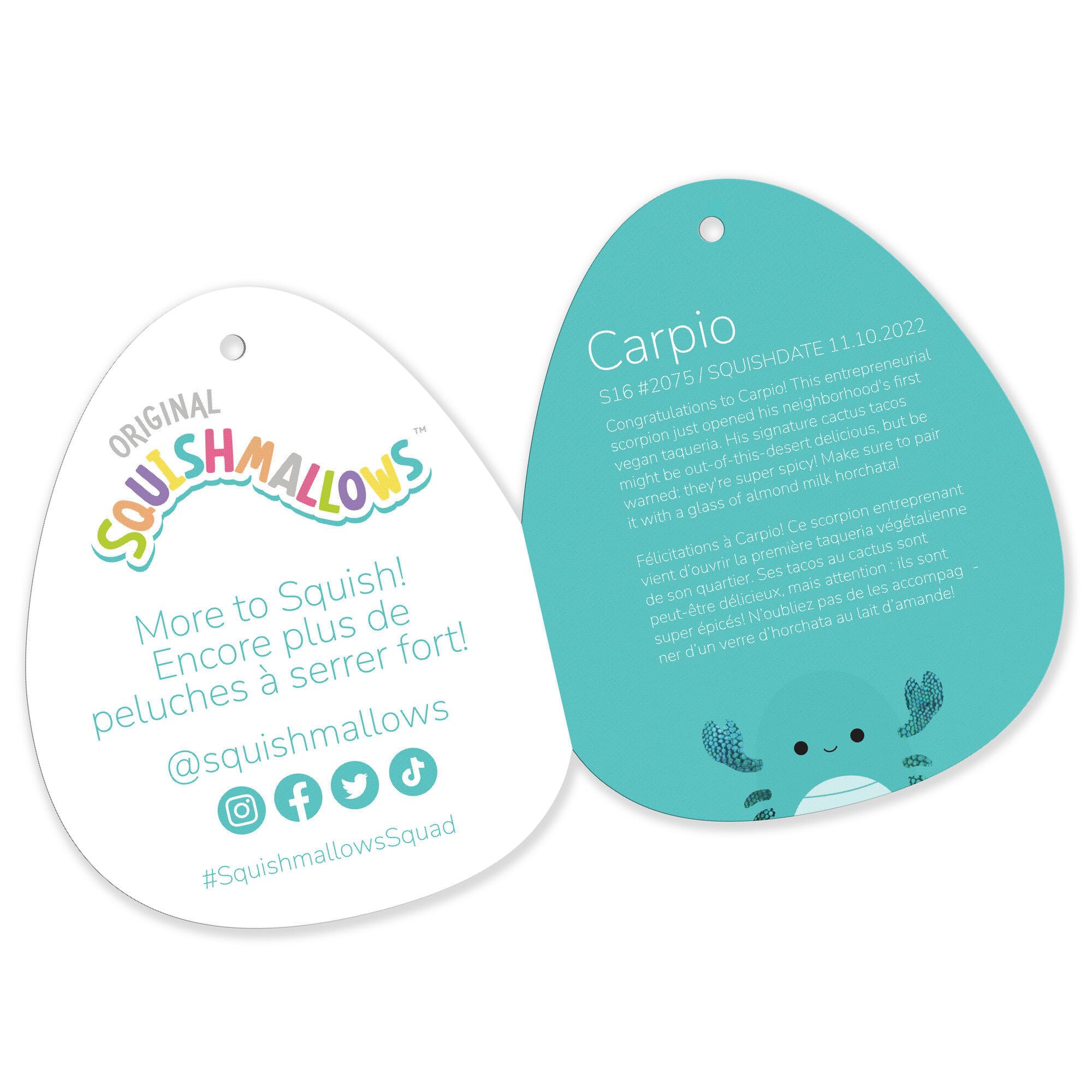 Squish time is playtime when you add Carpio to your Squishmallows Squad! This ultra-squeezable 16-inch large teal scorpion plush is made with high-quality and ultrasoft materials. Add this adorable scorpion plush to your Squishmallow Squad! Squishmallows are perfect to snuggle with while relaxing at home, watching a movie, or traveling! This authentic Squishmallows plush is easy to clean: hand wash, then air dry. These lovable and squeezable Squishmallows are the softest and cutest plush toys around! Only by Original Squishmallows. Join the Squad!
