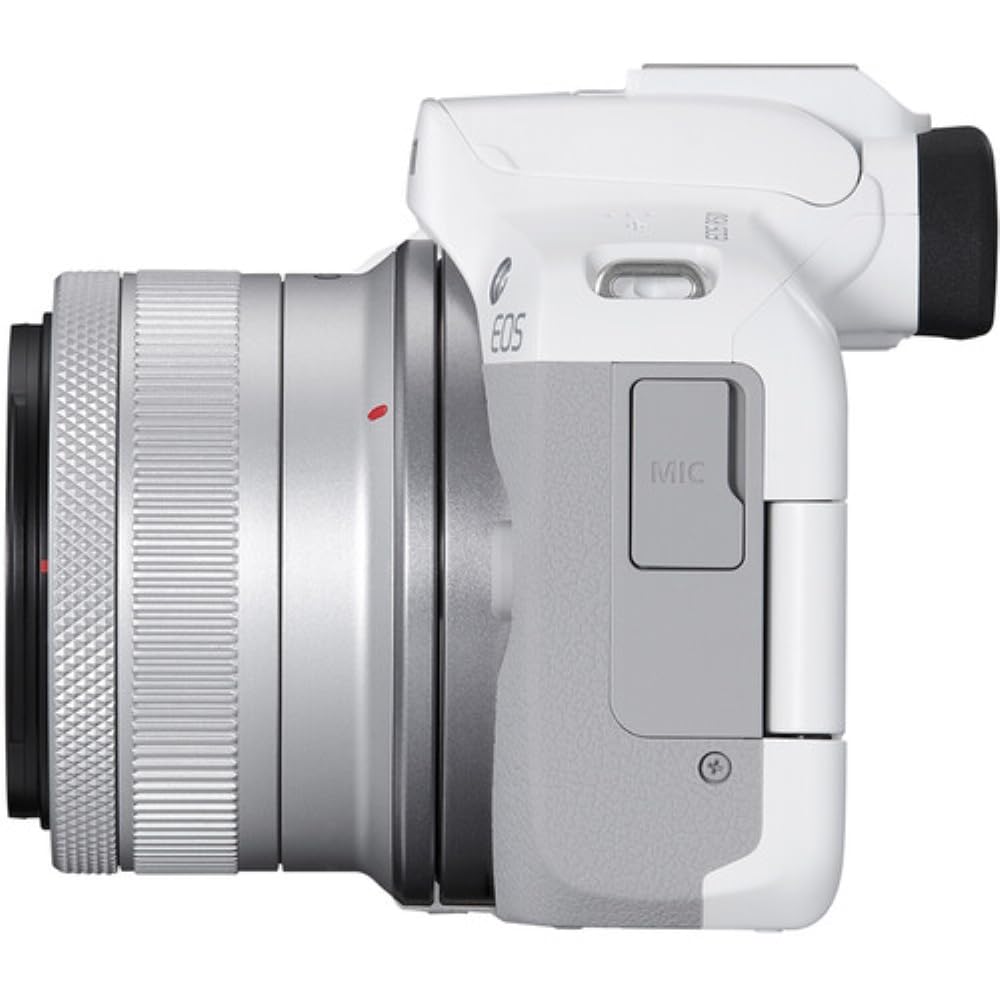 The white Canon EOS R50 is a highly versatile mirrorless camera with a sophisticated photo and video feature set. Geared towards content creators and vloggers, this camera is slightly smaller and lighter than the EOS M50 Mark II and features an upgraded 24.2MP APS-C CMOS sensor and DIGIC X image processor to deliver high-resolution stills and UHD 4K videos.