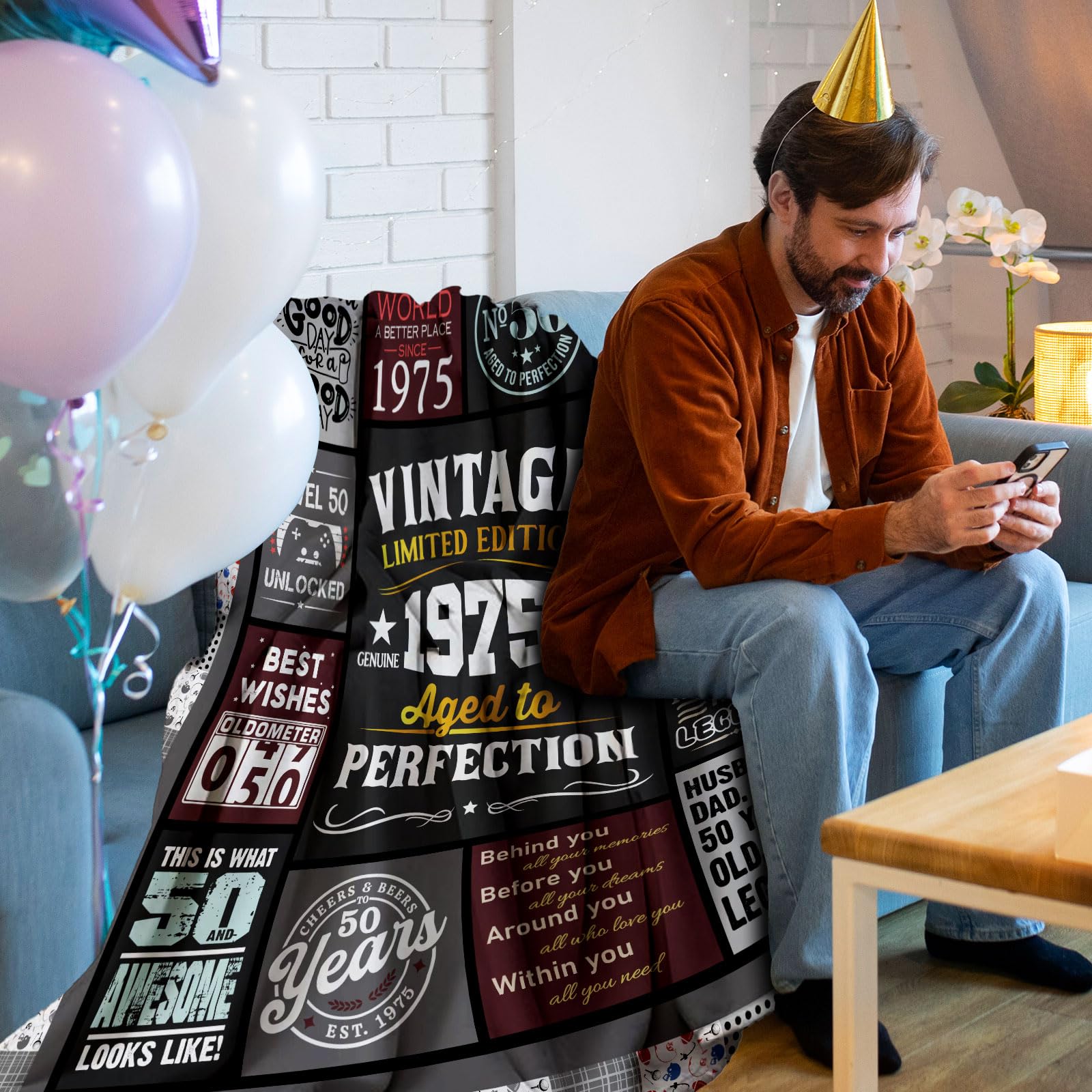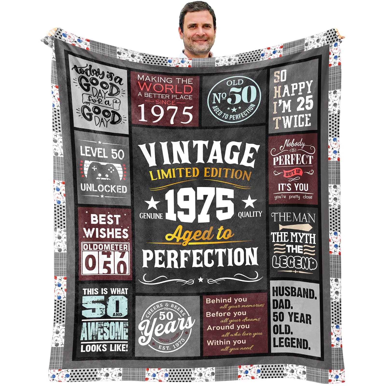 50th Birthday Gifts for Men - Join in celebrating the exceptional 50-year-old man in your life. This milestone 50th birthday blanket features a unique, limited edition '1975' logo, symbolizing his birth year. It's a heartwarming surprise that honors his special journey and the memorable moments that define him.