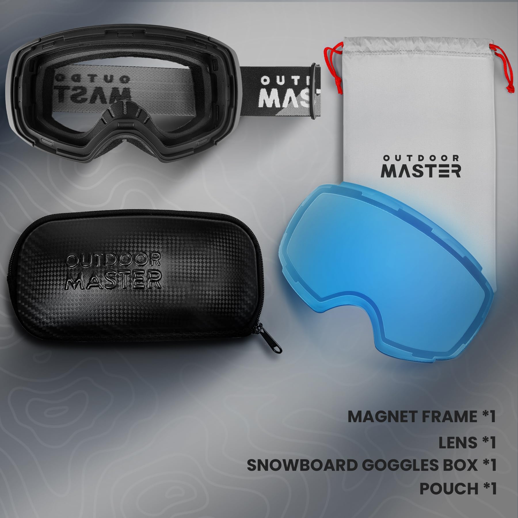 What You Get: 1 x OutdoorMaster ski goggles PRO, 1 x protective case, 1 x carrying pouch, and friendly customer service