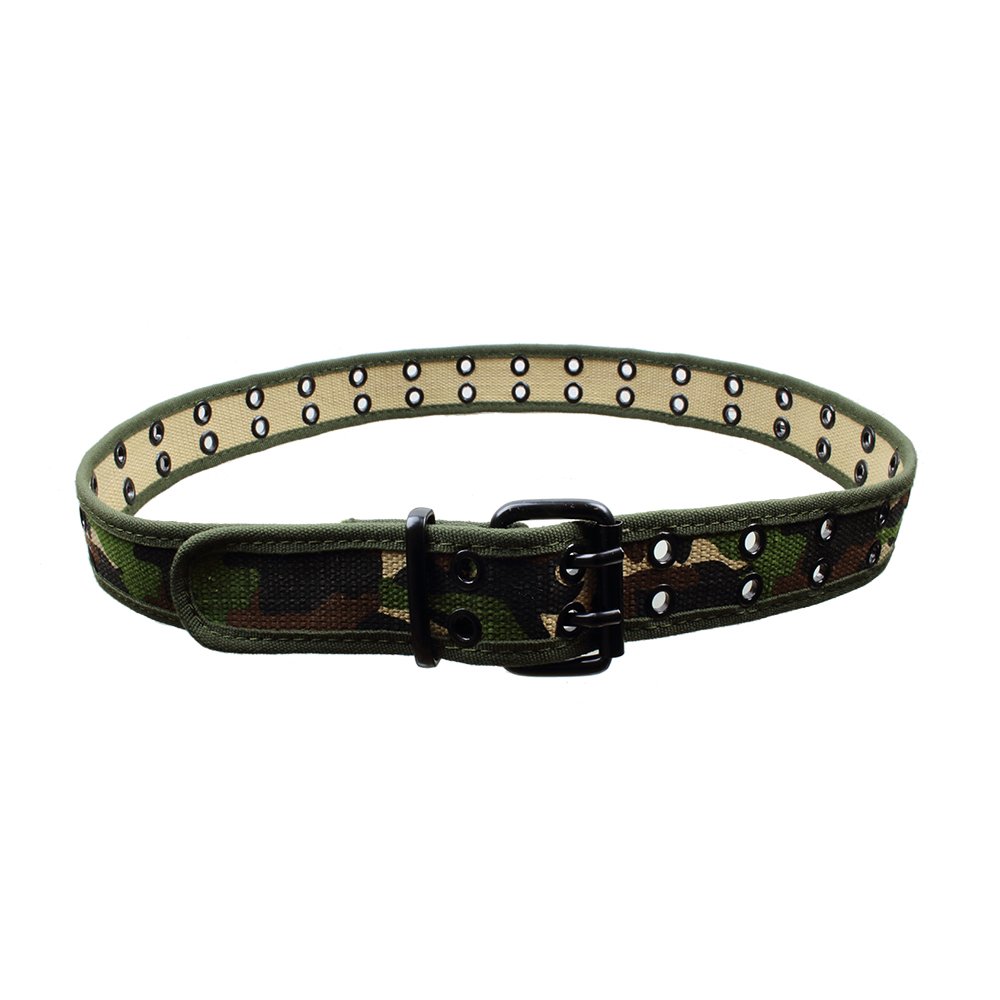 Canvas Web Belt /Black Double Grommet Holes / Metal Buckle