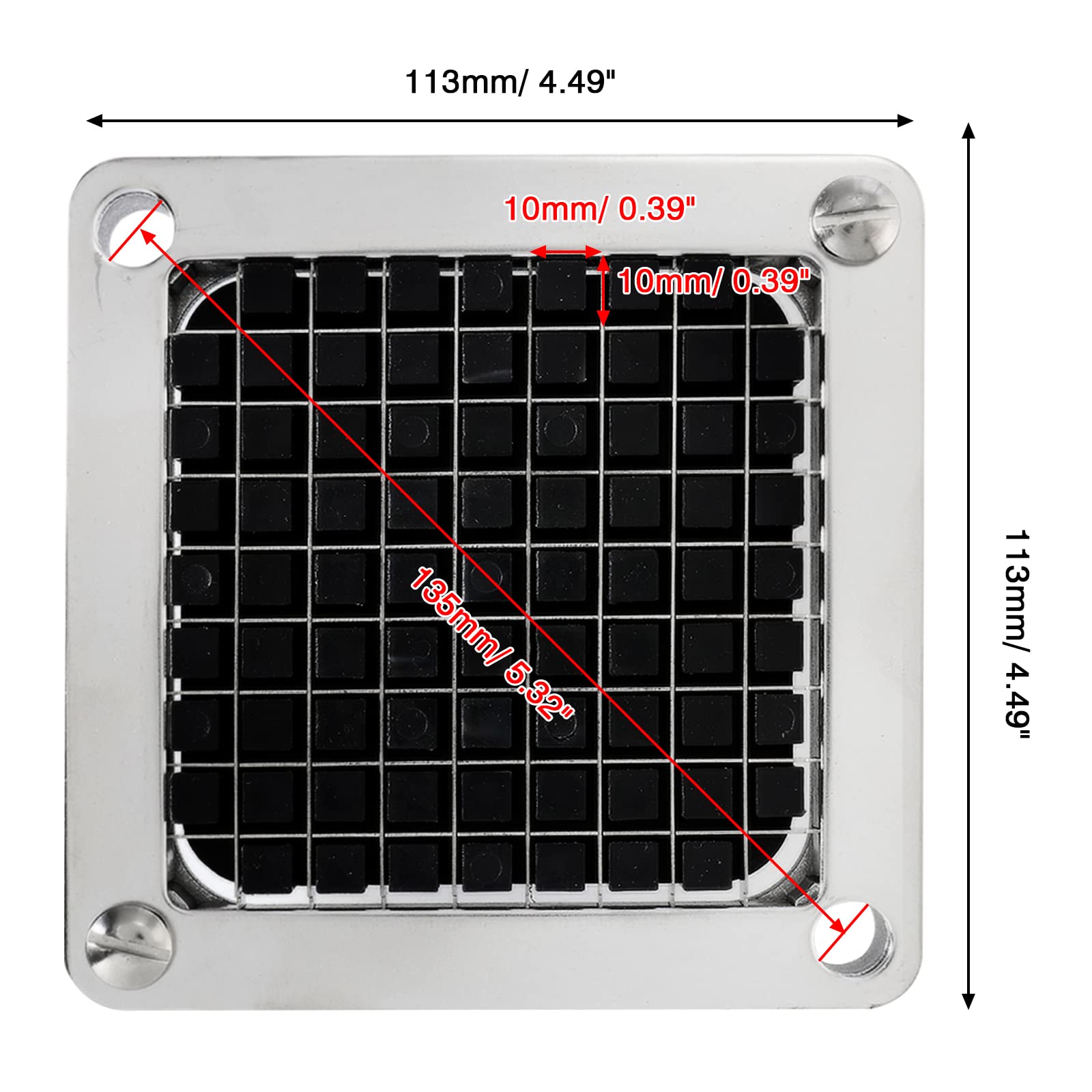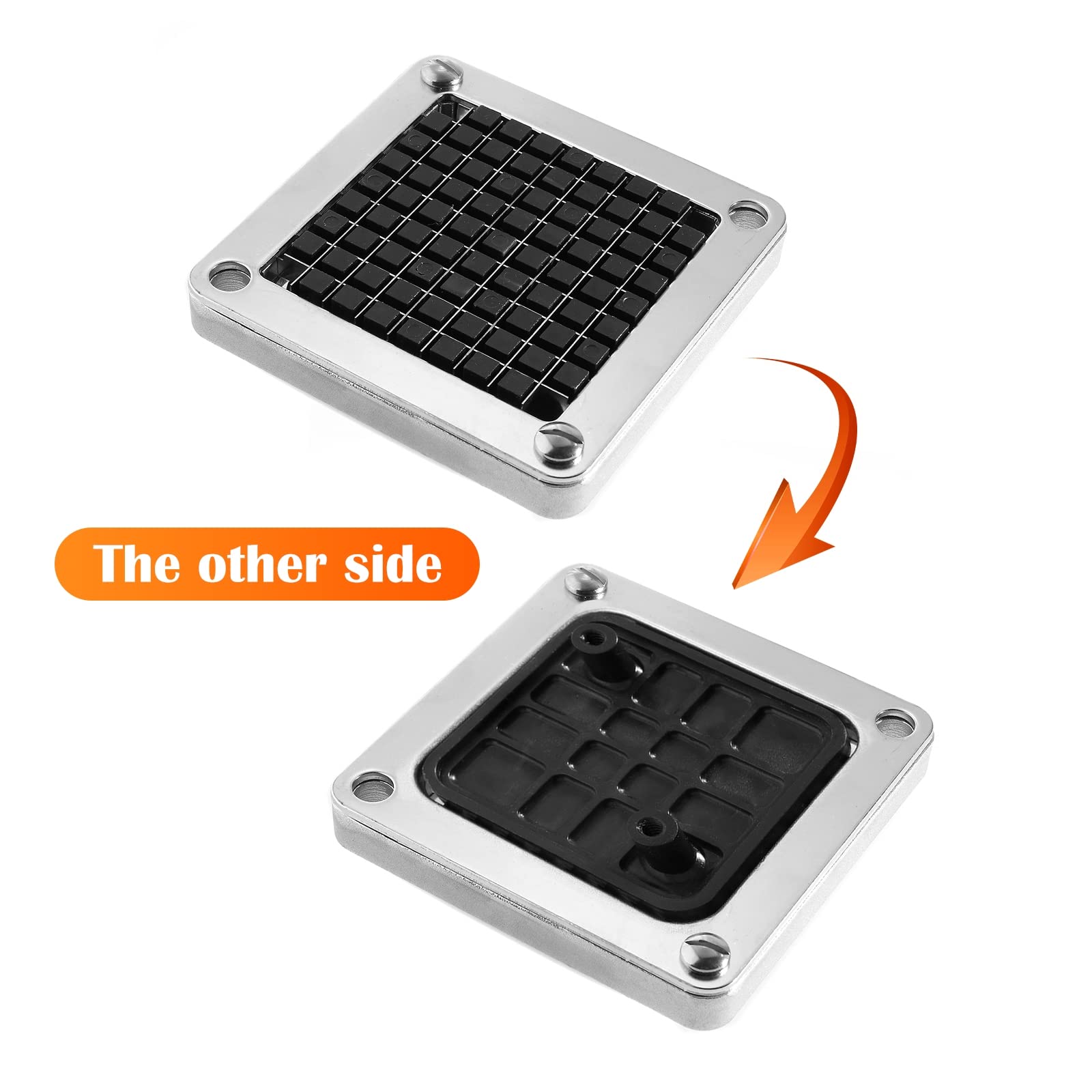 š ćEasy to Operateć vegetable chopper allowing effortless and convenient operation, Simply place the vegetables on the blade assembly and pull down the pusher block and you will get 3/8" (0.9 cm) of cut vegetables or fruit.