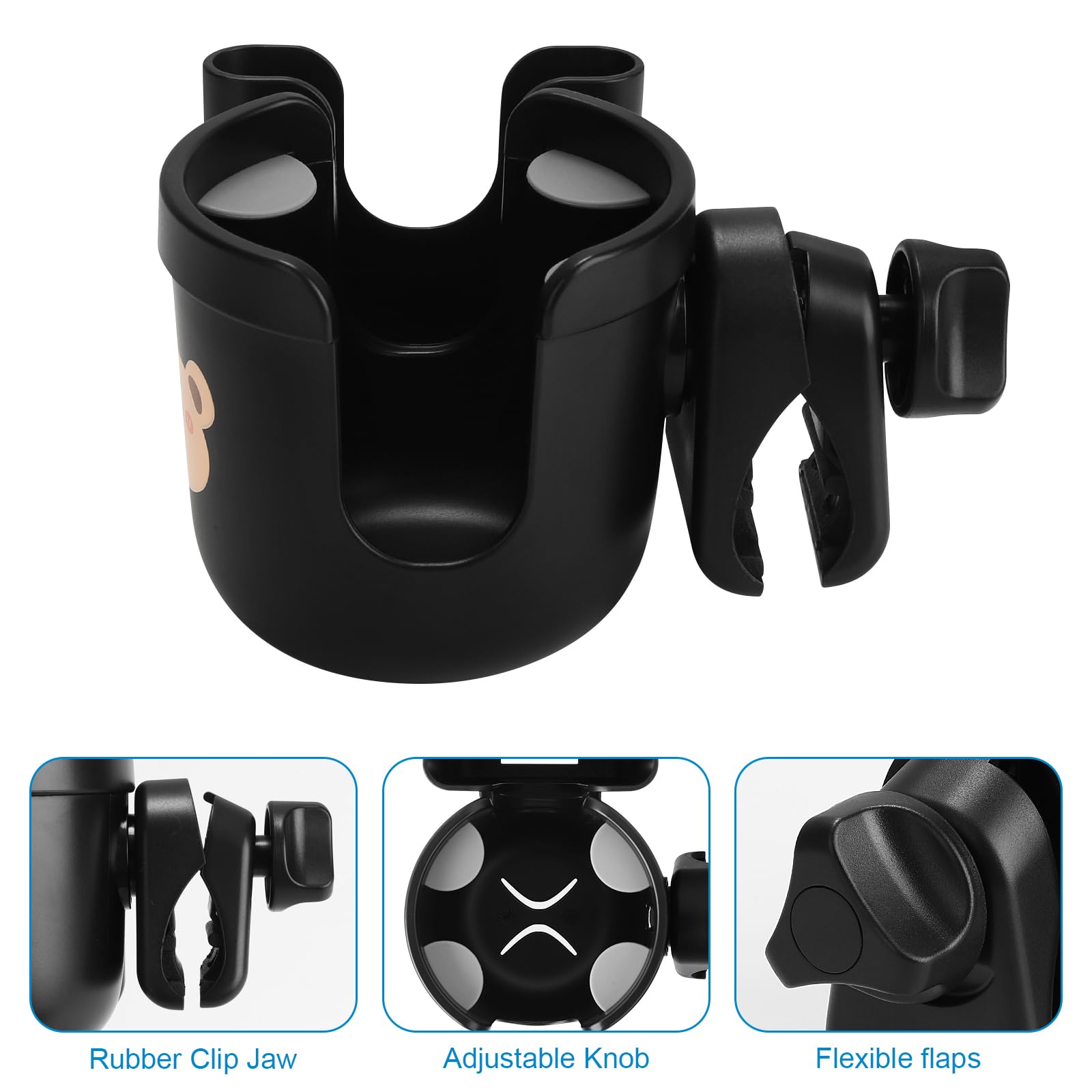 Easy to install or remove: It is a "clip on" cup holder, you just need to clamp on anywhere you like. The ABS plastics and slip resistant rubber ensure the bottle keep steady even on the rough road.