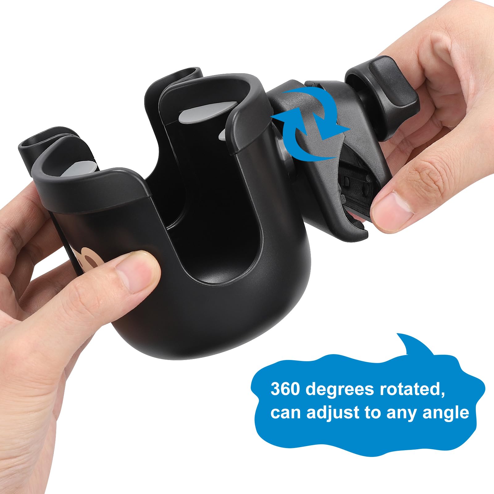 The clamp designed with rubber pad, it helps lock the cup holder onto the bar without movement. The clamp can also rotate 360 degrees, and it is adjustable to fit different size handle which diameter is 0.55-1.7 in / 1.4 cm- 4.5 cm.