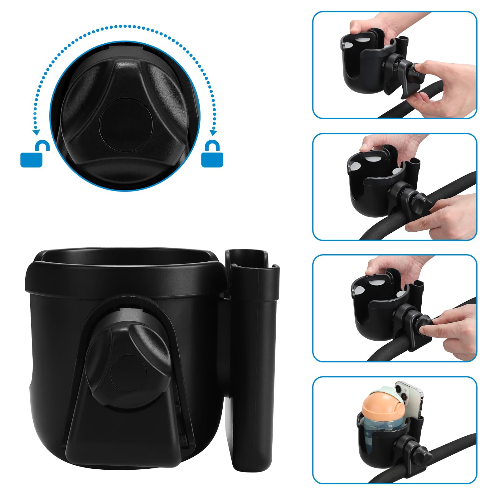 2-in-1 Walker Cup Holder: This cup holder can be used to hold bottle and cell phone at the same time. Install it on a wheelchair or walker, you can drink some water when thirsty. Or see new messages, incoming calls in the first time.